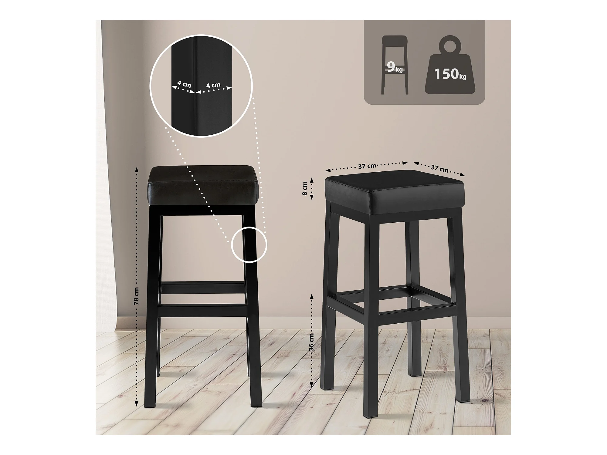 Tabouret de bar - Similicuir & Noir - Noir - Dyn V2
