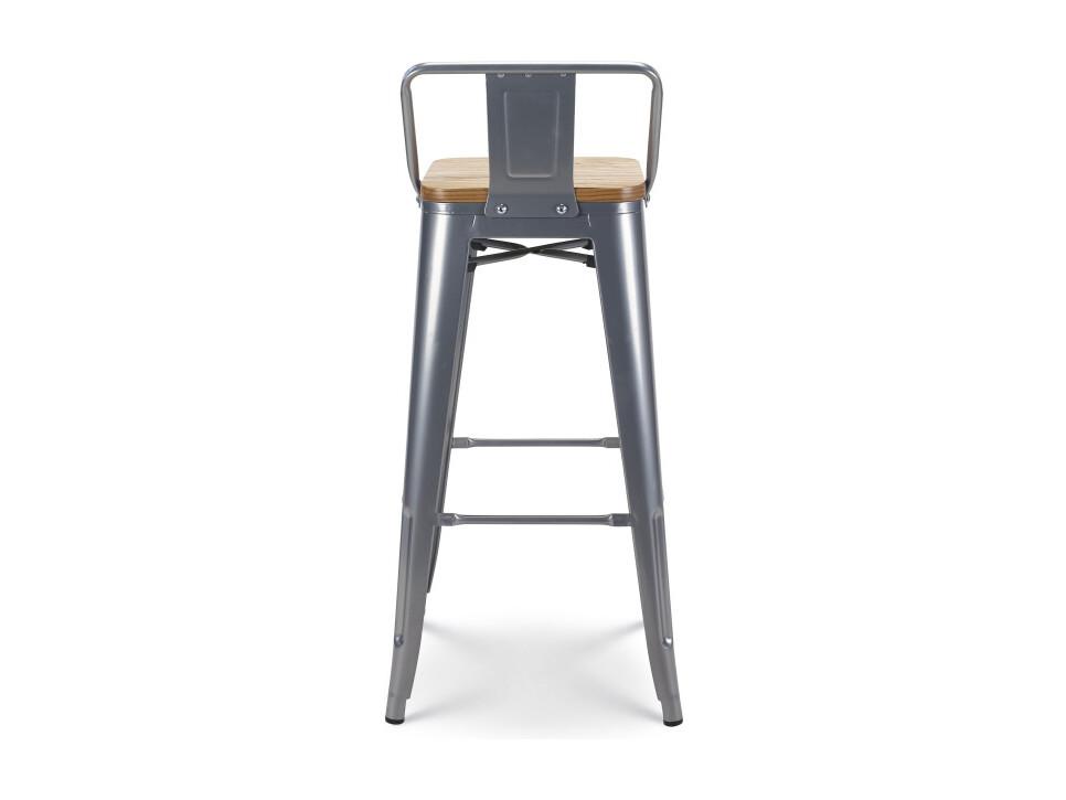 Tabouret de bar style industriel avec dossier en métal silver et assise en bois clair - Hauteur 76 cm