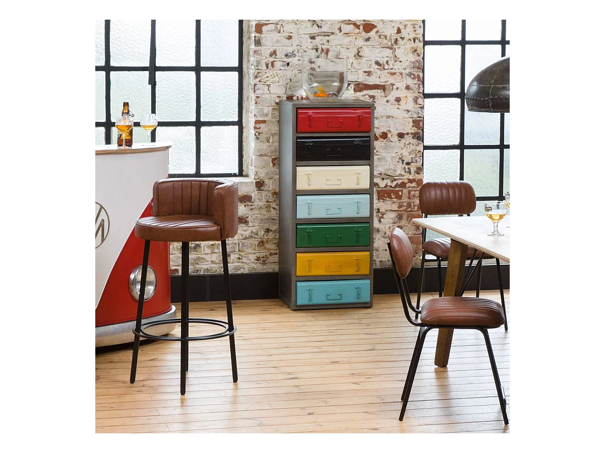 Tabouret de bar en cuir et métal Hauteur siège 75 cm