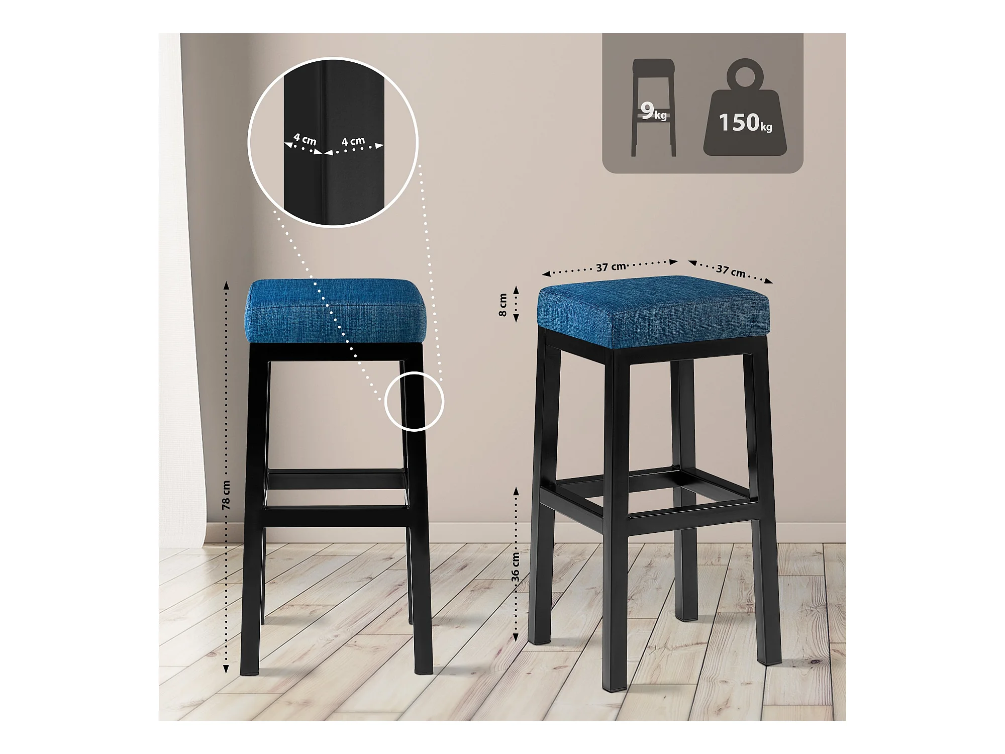 Lot de 2 Tabouret de bar - Tissu & Noir - Bleu - Montreal 80
