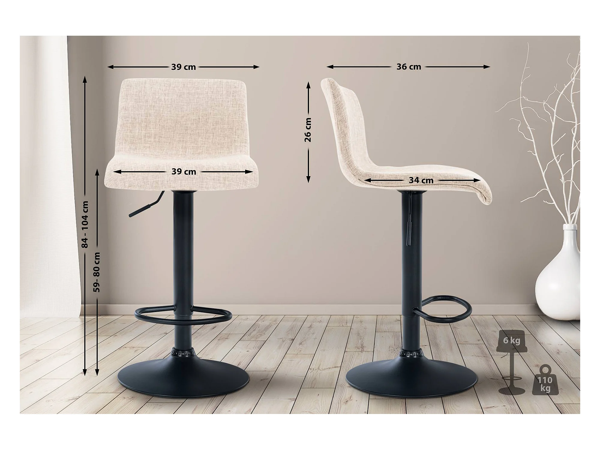 Tabouret de bar - Tissu & Métal noir mat - Crème - Hover