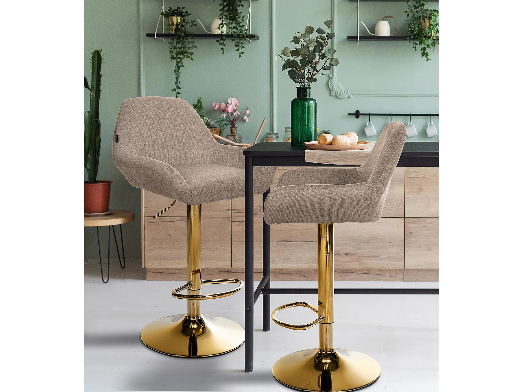 Tabouret de bar - Tissu & Blanc - Taupe - Braga