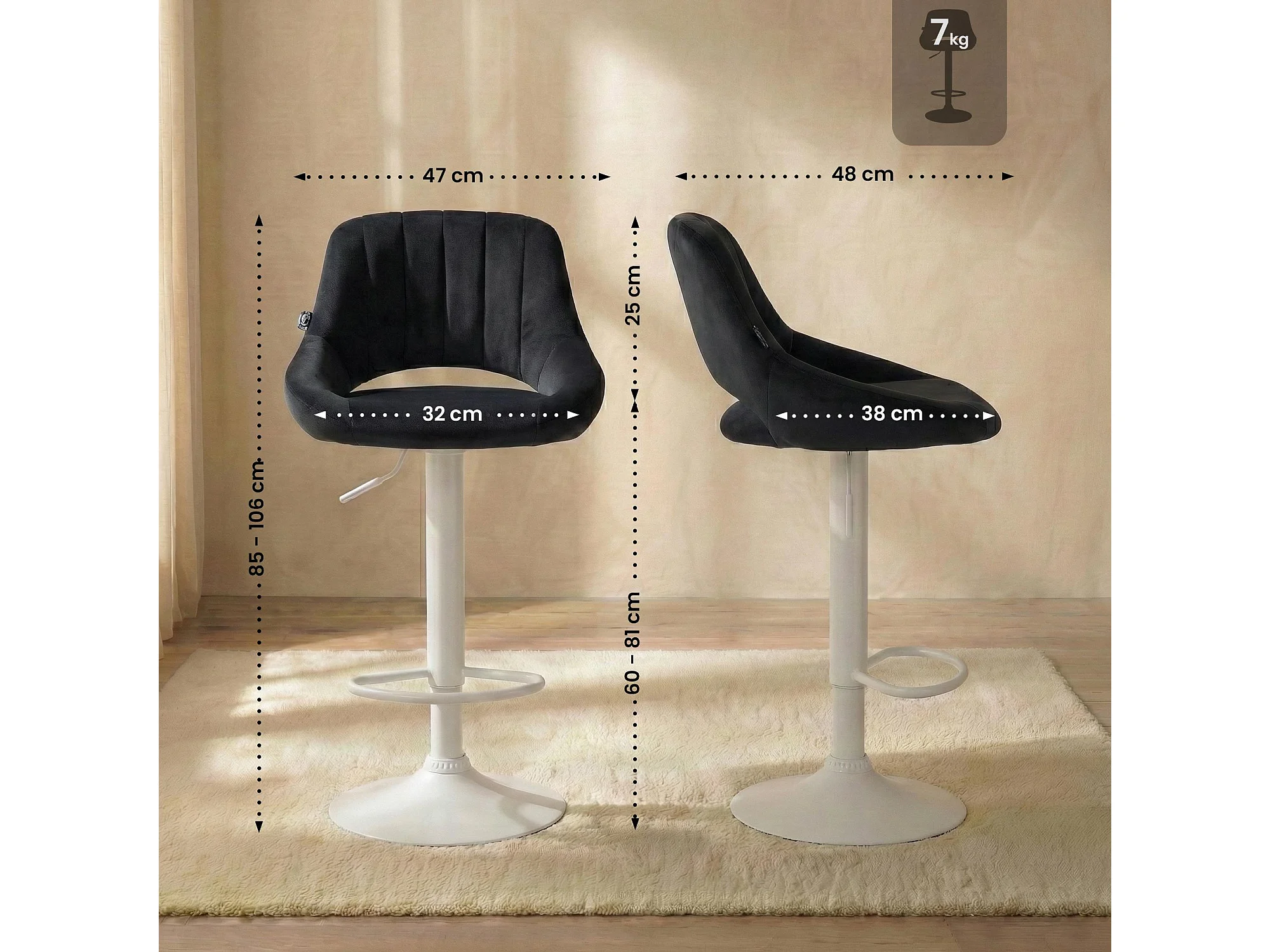 Tabouret de bar - Velours & Blanc - Noir - Peru