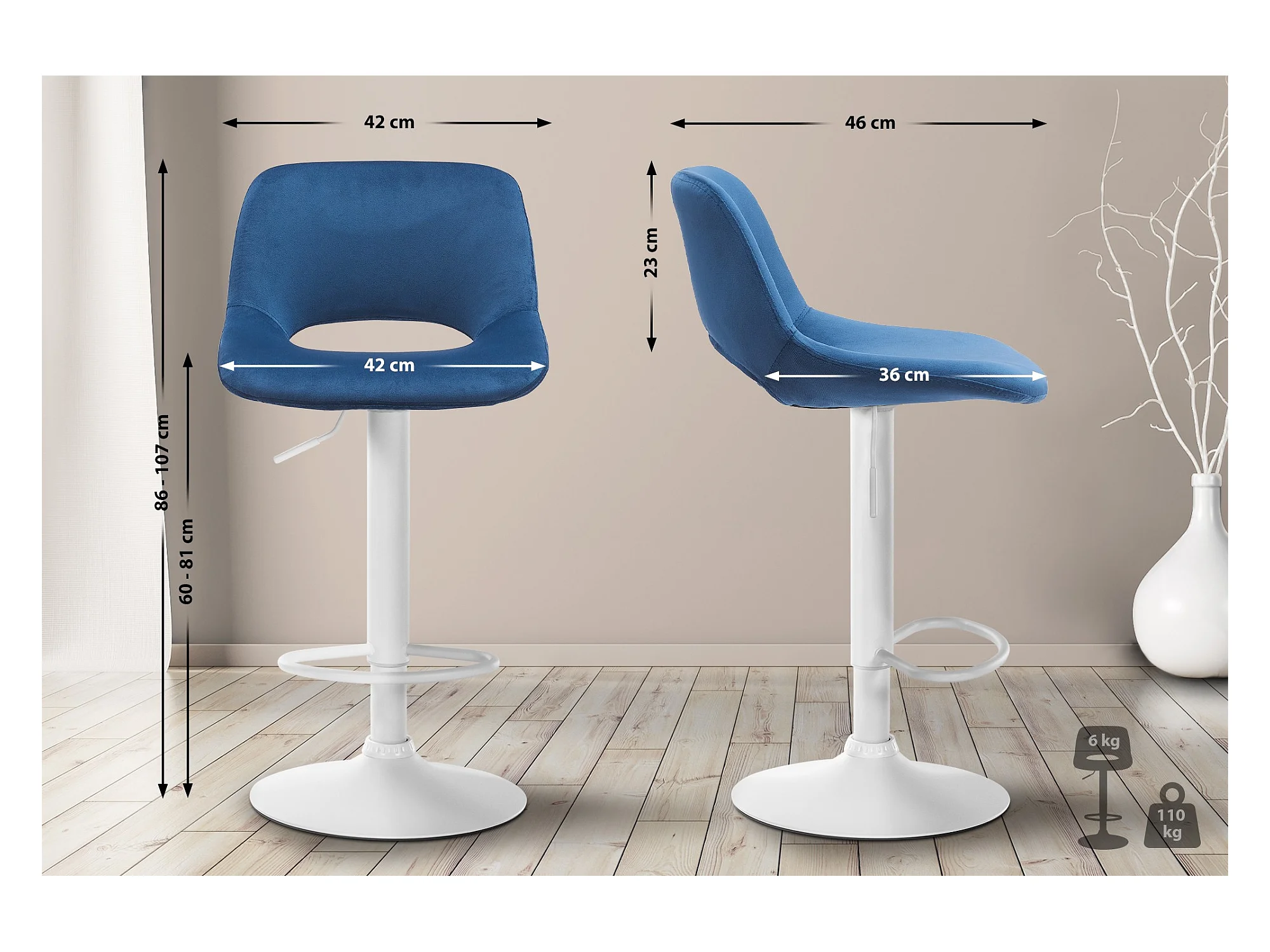 Tabouret de bar - Velours & Blanc - Bleu - Damar