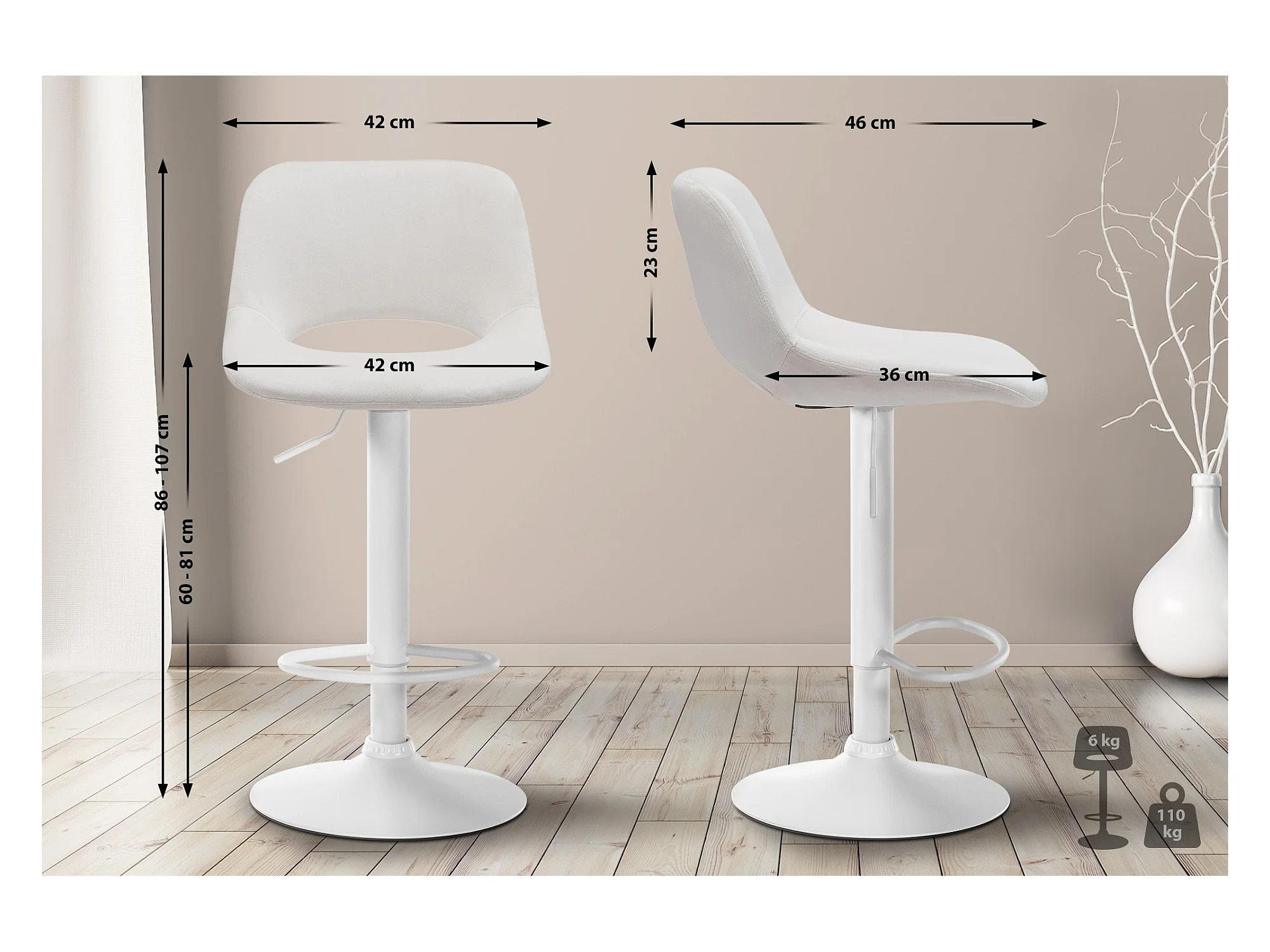 Tabouret de bar - Velours & Blanc - Crème - Peru