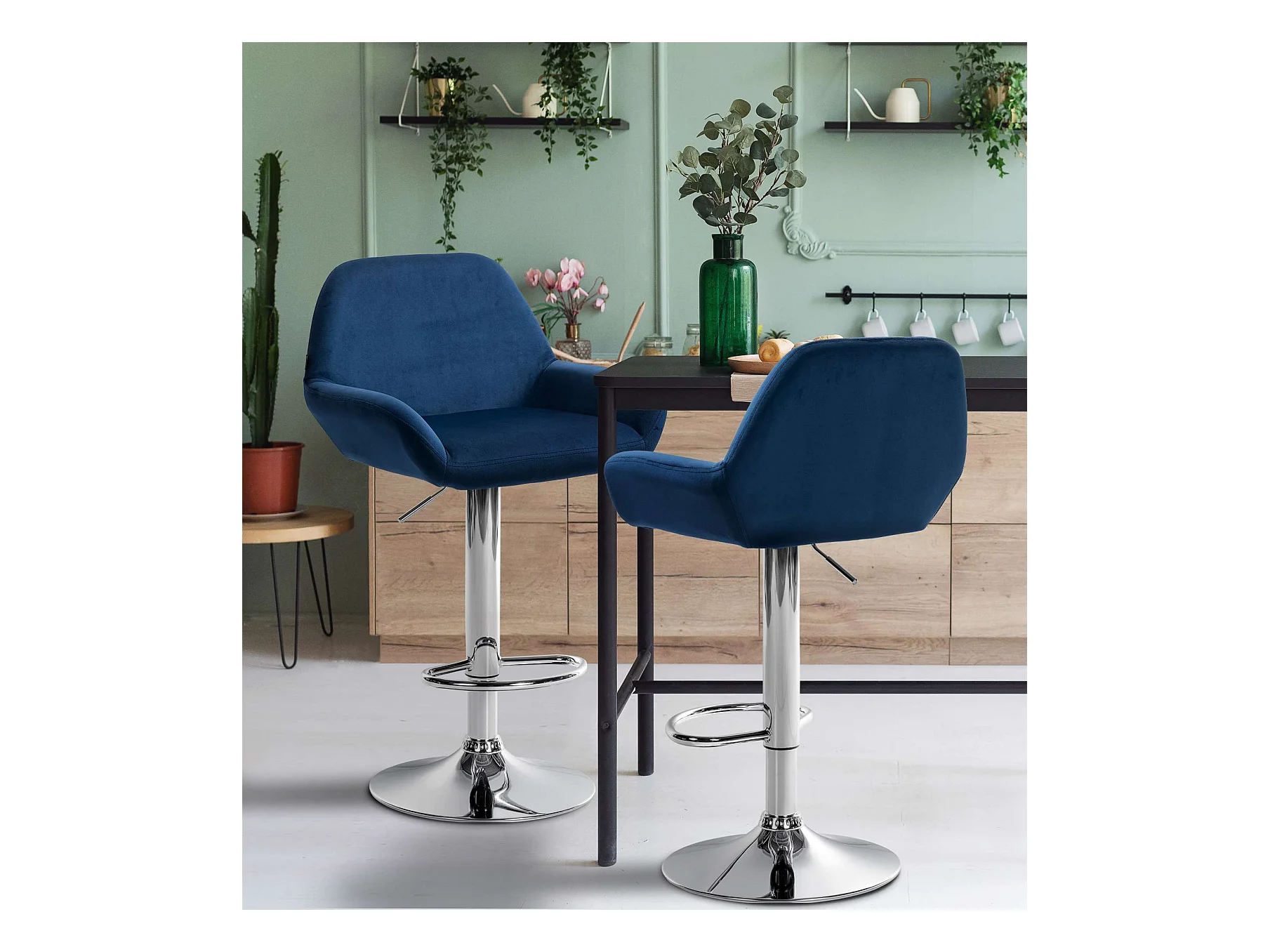 Tabouret de bar - Velours & Chrome - Bleu - Braga