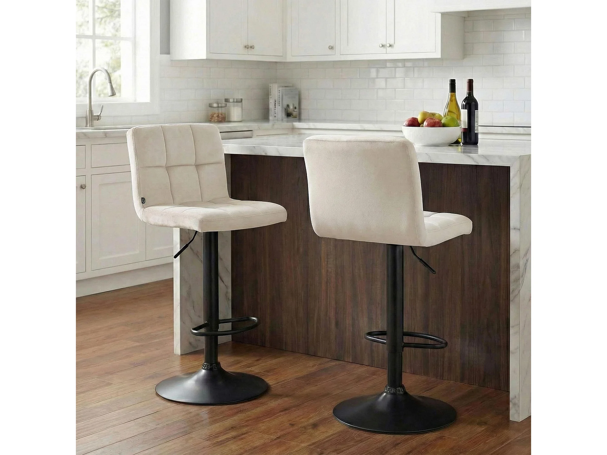 Tabouret de bar - Velours & Blanc - Crème - Peru