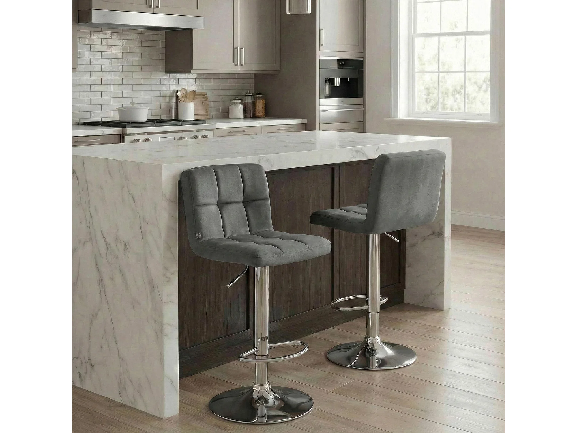 Tabouret de bar - Velours & Chrome - Gris - Peru