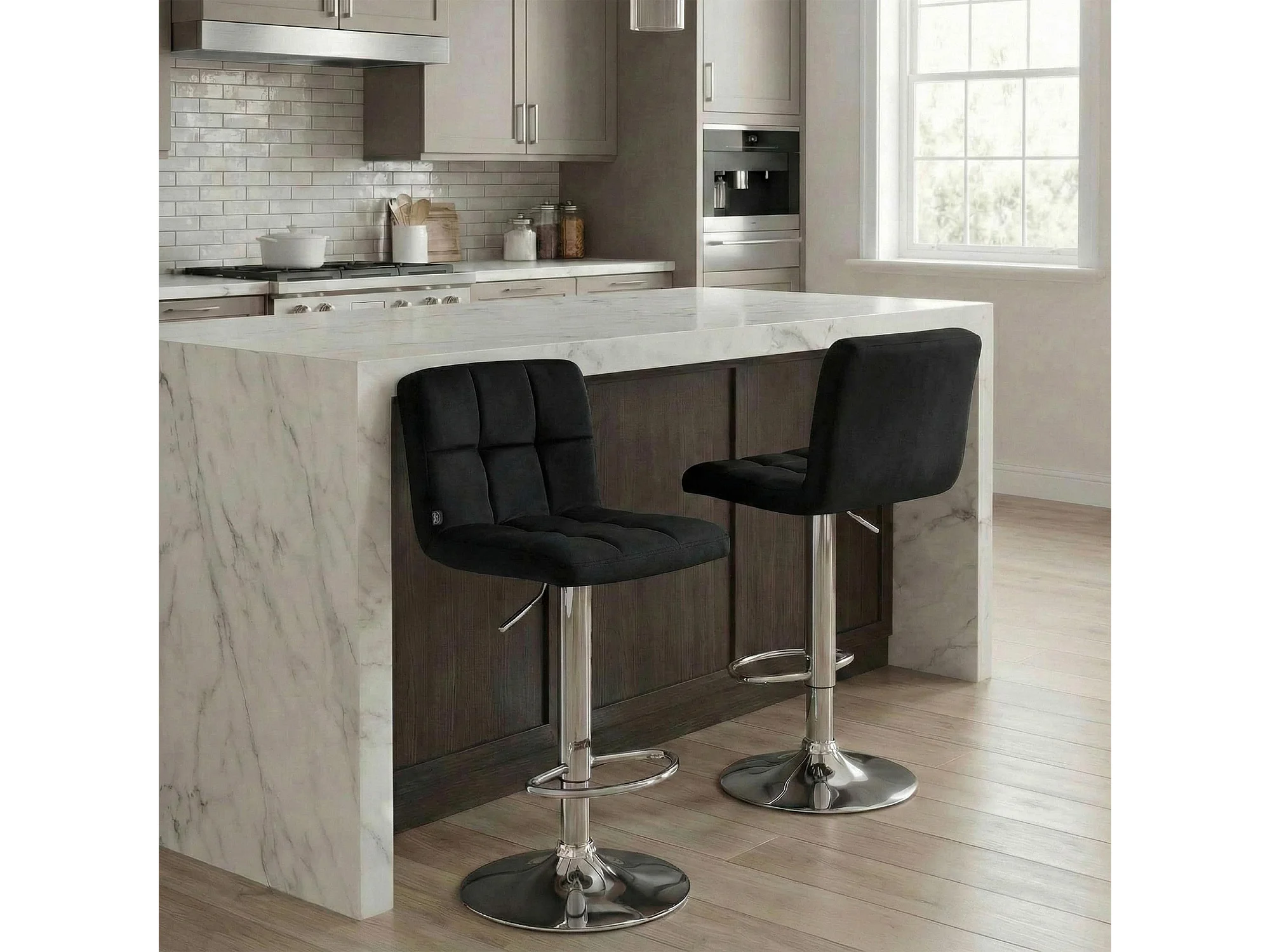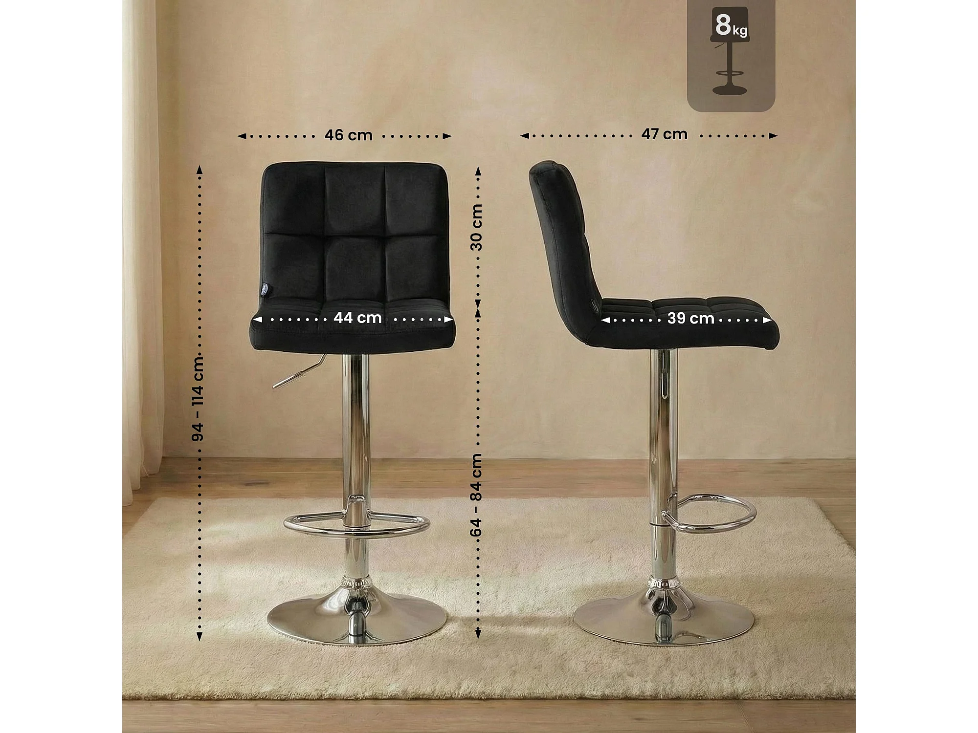 Tabouret de bar - Velours & Chrome - Noir - Peru