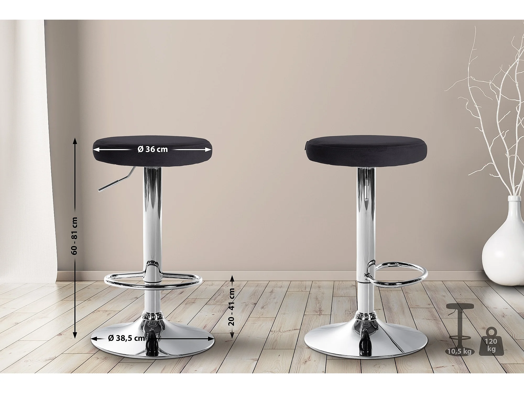 Tabouret de bar - Velours & Chrome - Noir - Ponte