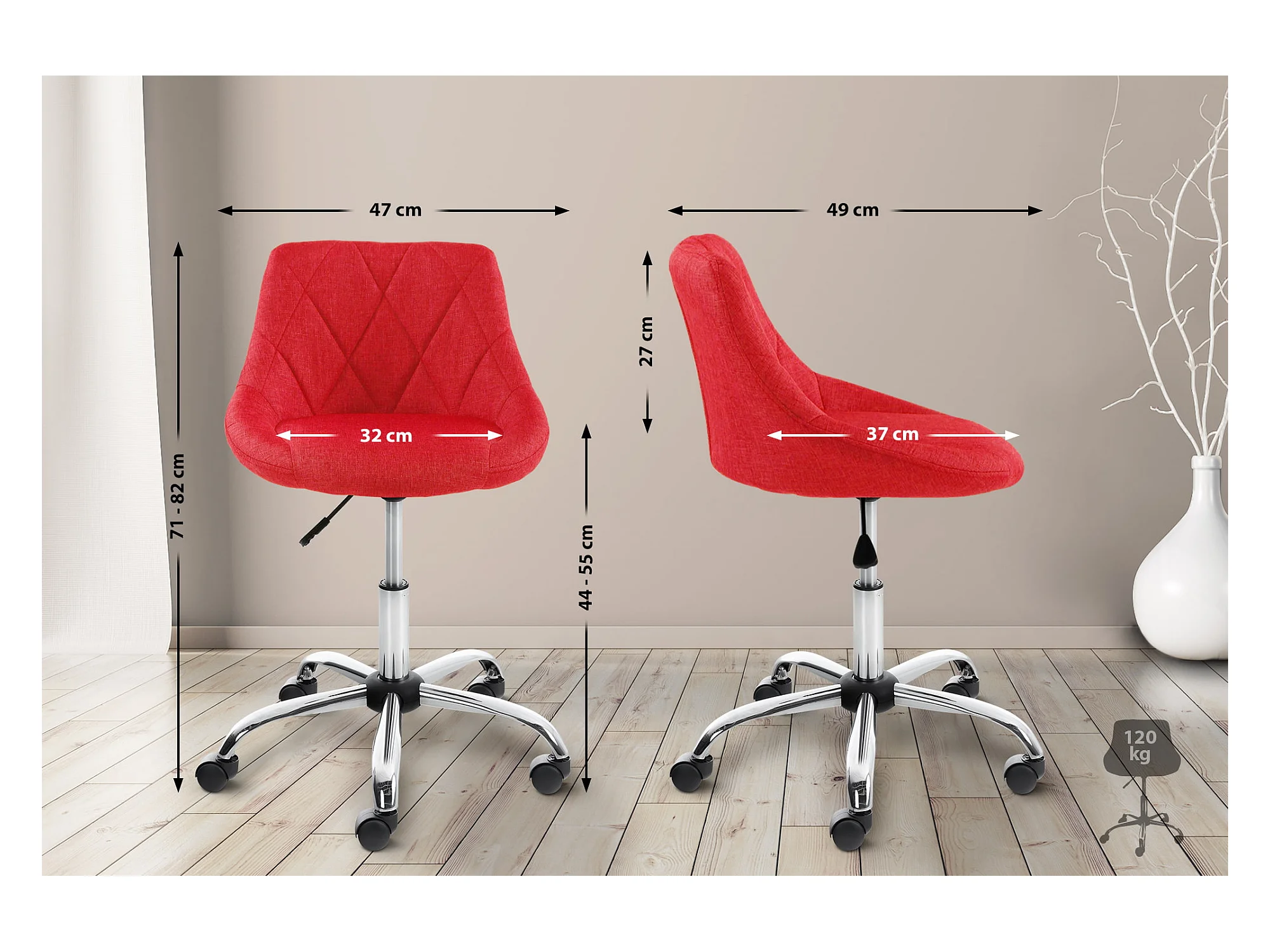 Chaise de bureau réglable en hauteur rouge ANNE - HAPPY GARDEN