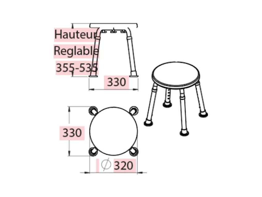 Tabouret de douche PMR PELLET Essentiel rond hauteur réglable