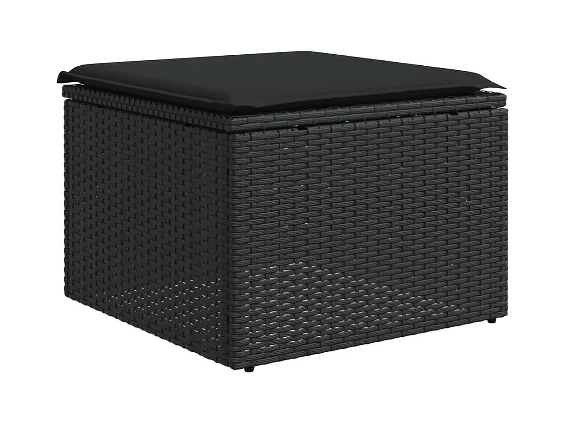 Tabouret de jardin avec coussin noir 55x55x37 résine tressée