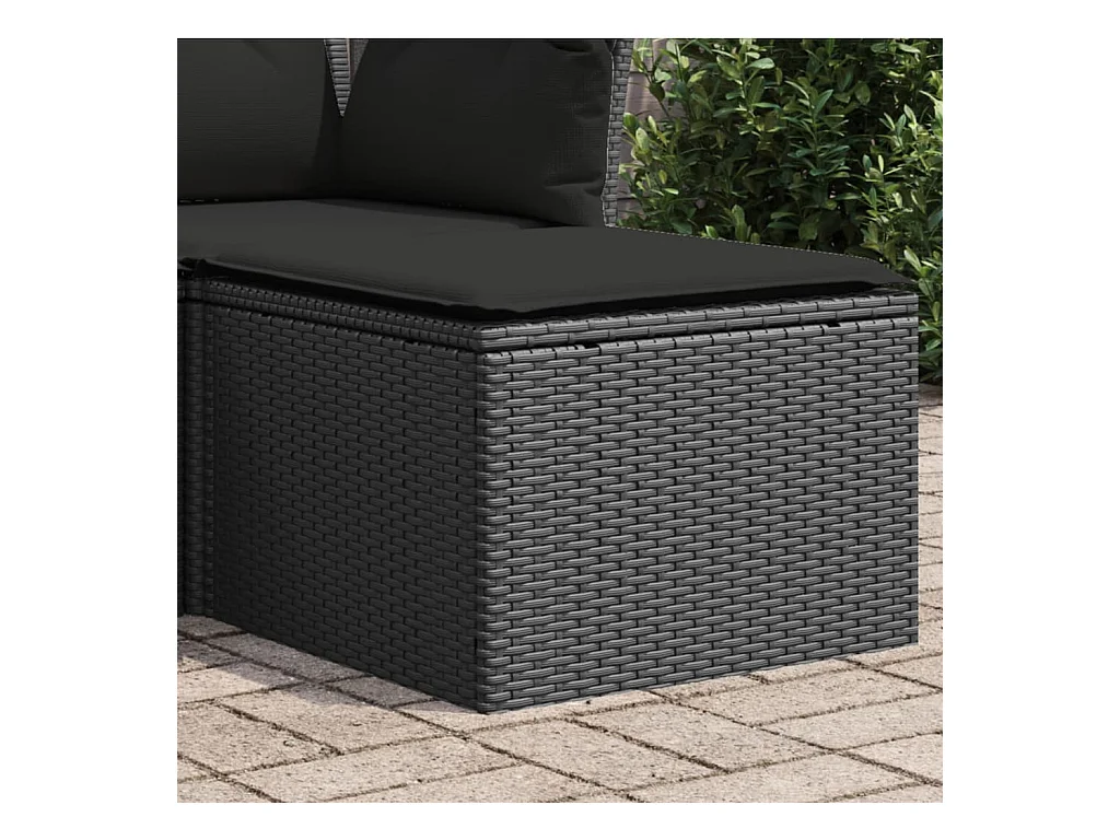 Repose-pieds de jardin avec coussins 2 pcs noir résine tressée