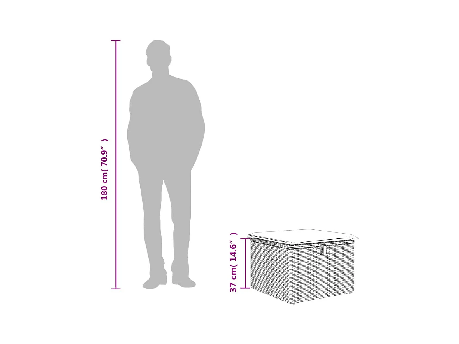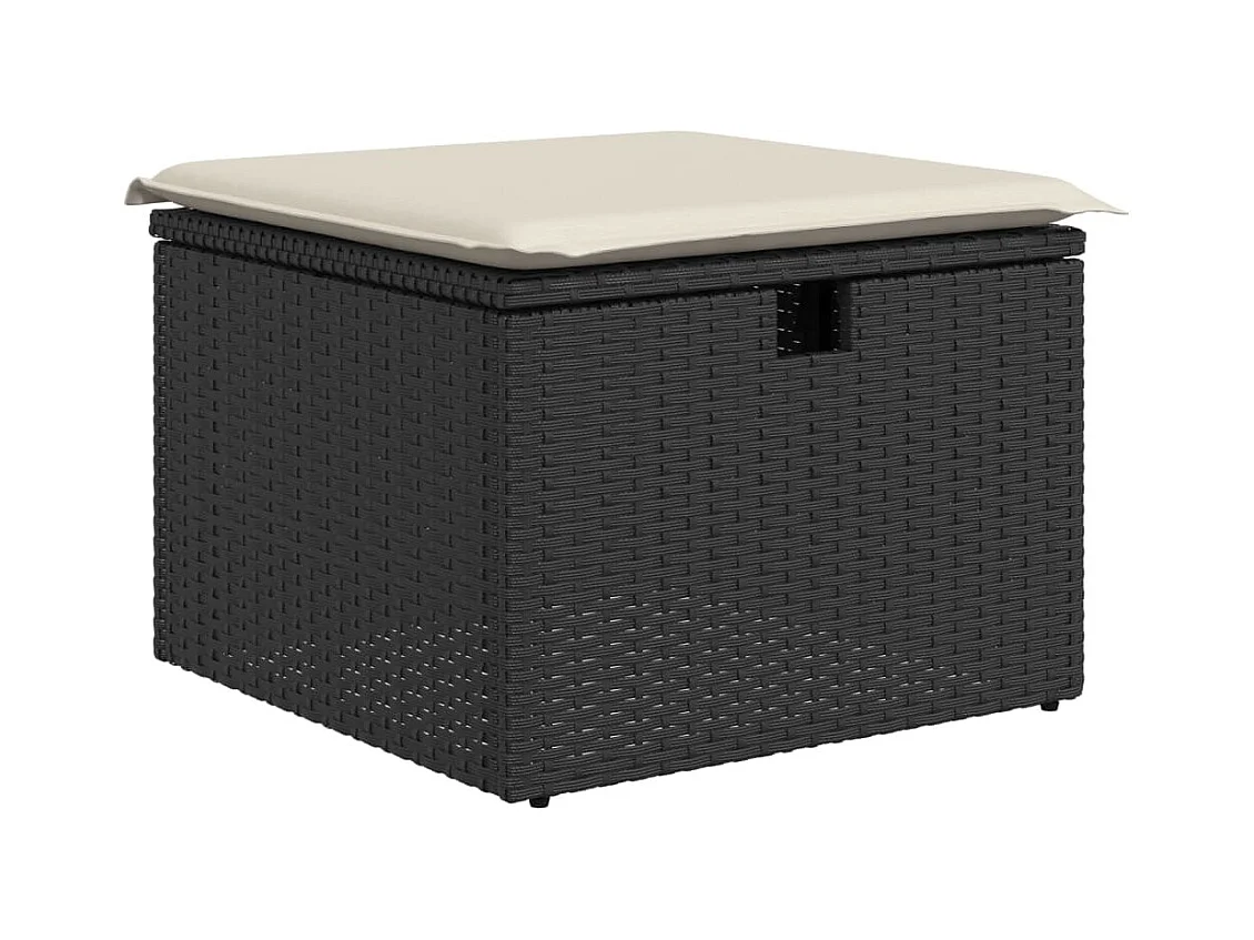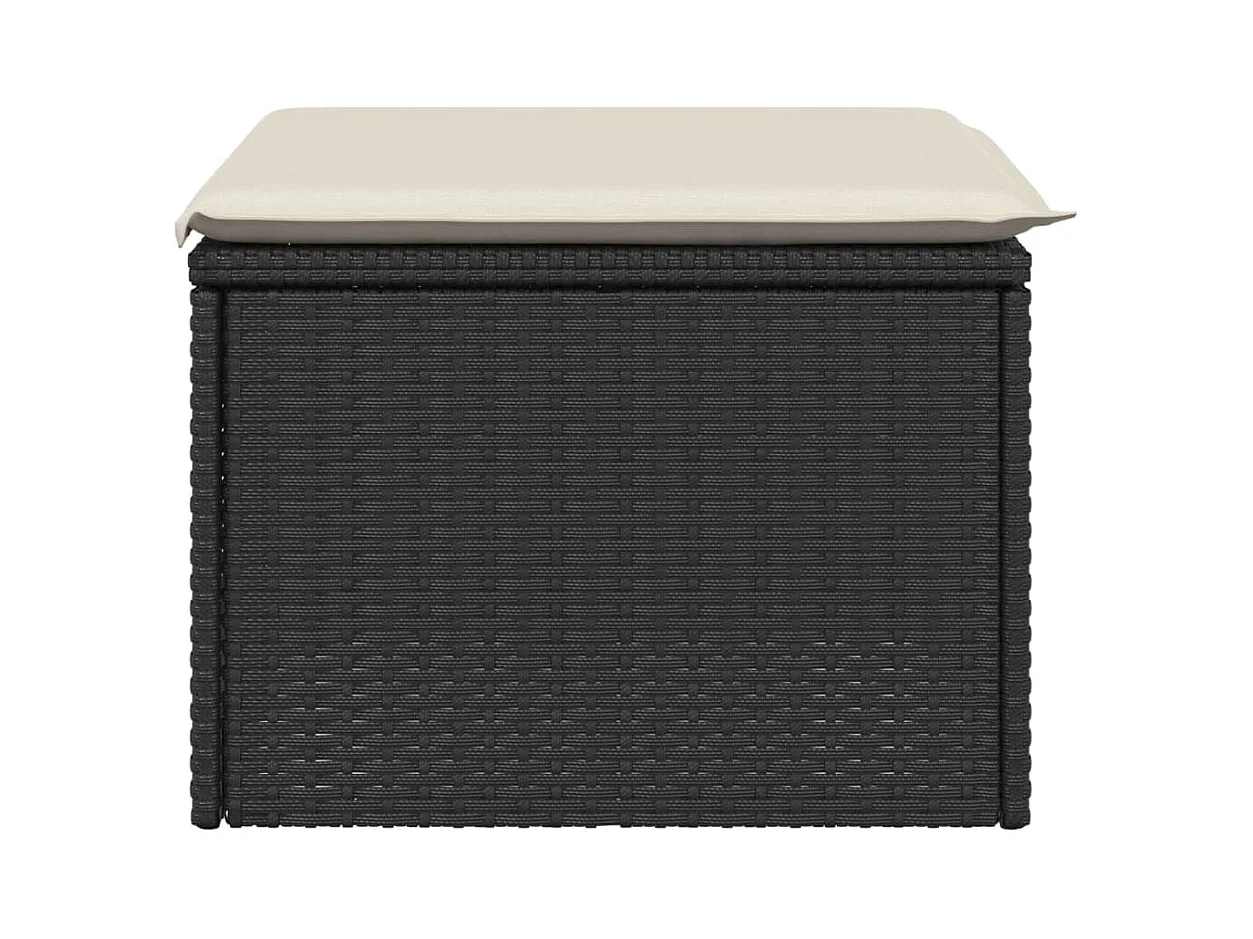 Tabouret de jardin avec coussin noir 55x55x37 résine tressée