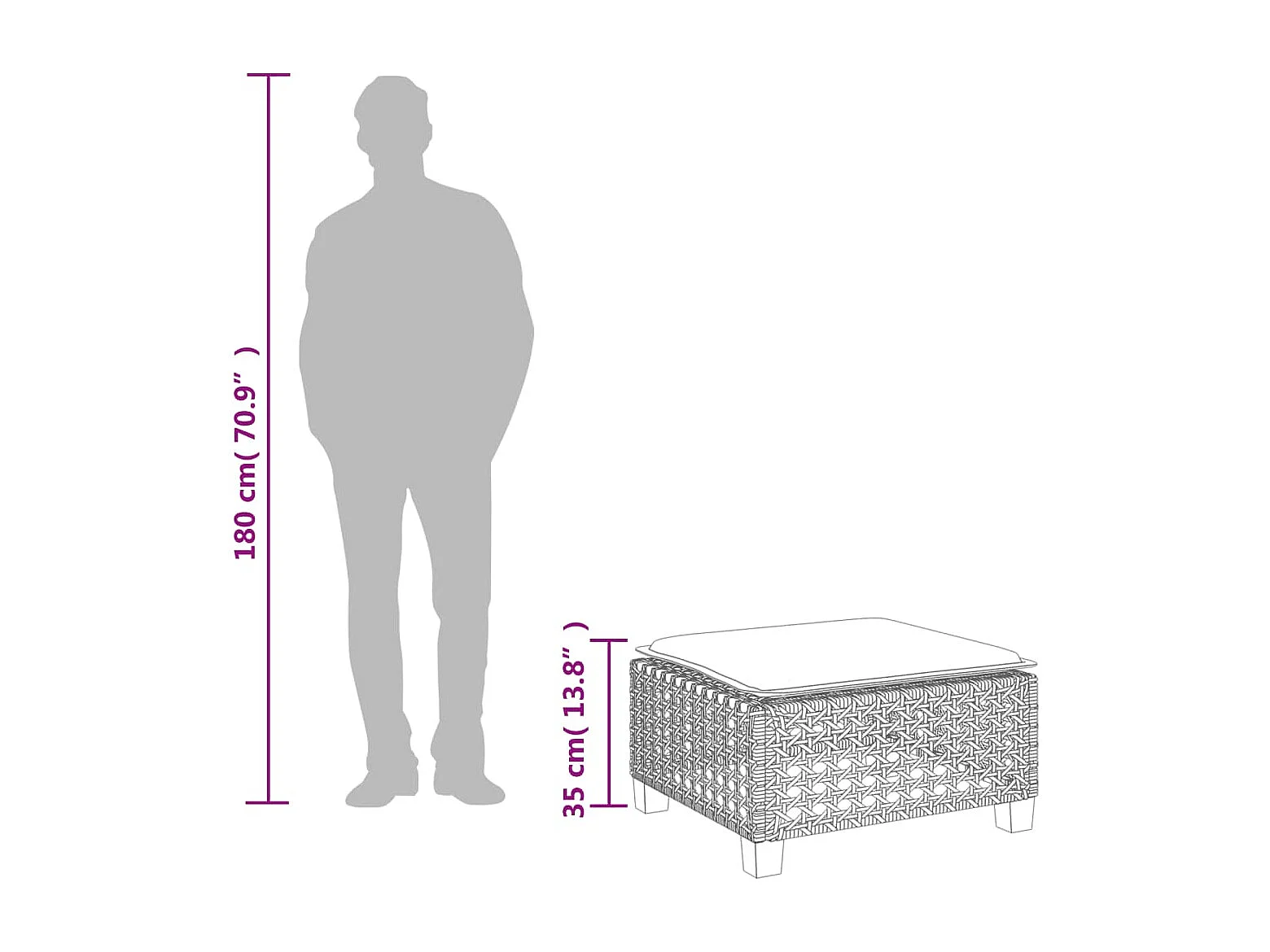 Tabouret de jardin avec coussin noir 55x55x37 résine tressée