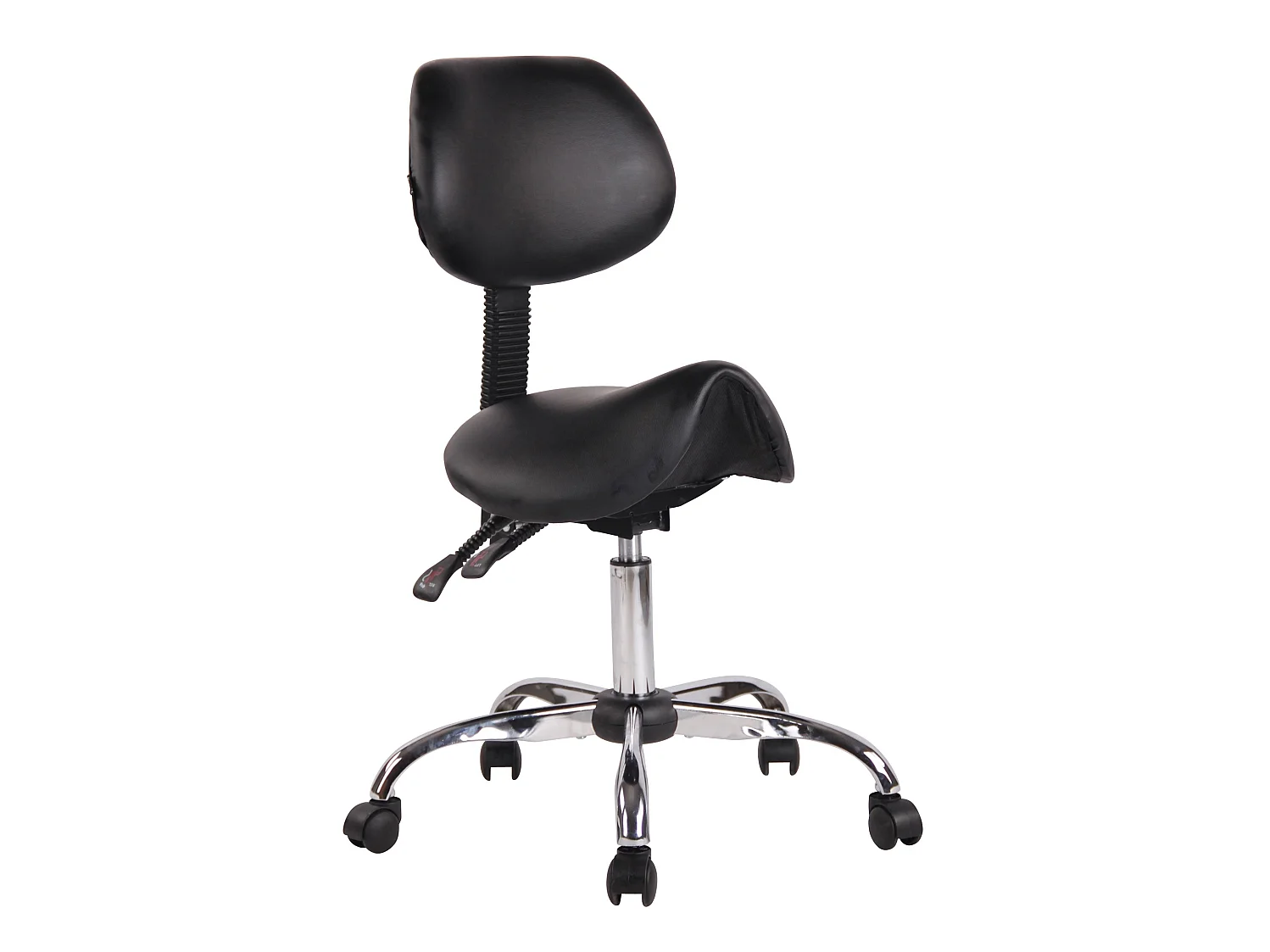 Lot de 2 tabourets de travail massage réglables - dossier ergonomique - acier chromé PU noir