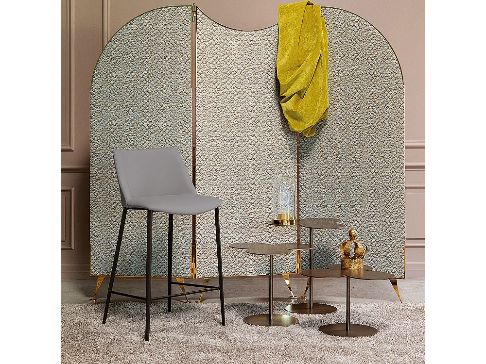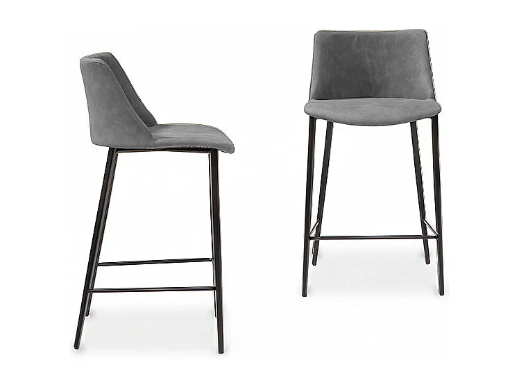 Tabouret en agate avec base gris charbon et tissu en cuir éco gris mouette