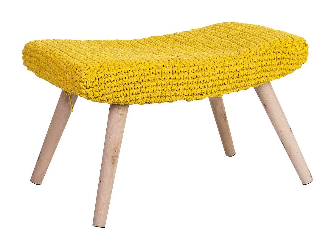 Tabouret en bois et coton tressé jaune 67x30x43h cm