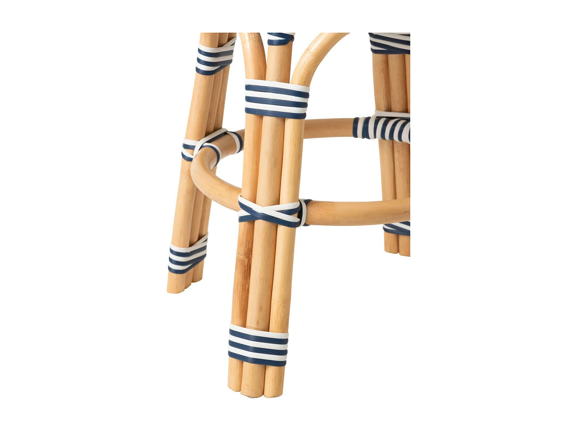 Tabouret en Rotin "Geo" 46cm Bleu & Blanc