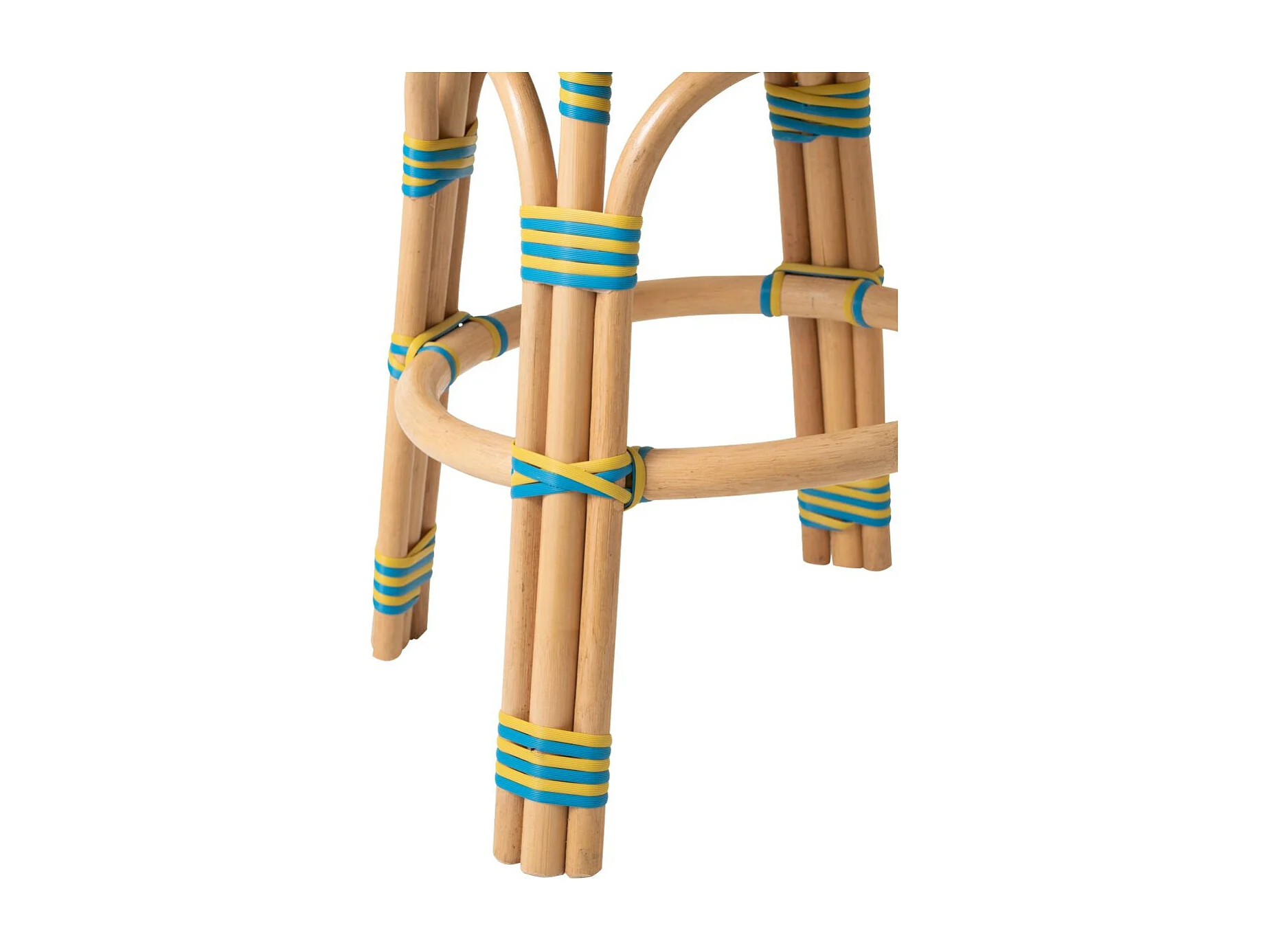 Tabouret en Rotin "Geo" 46cm Jaune & Bleu