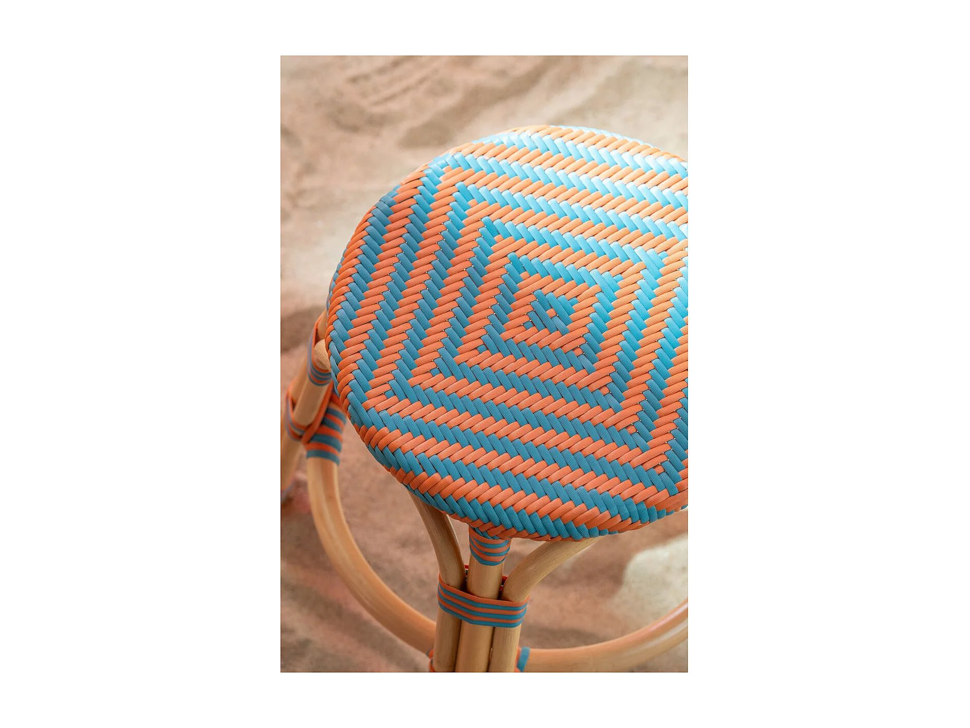 Tabouret en Rotin "Geo" 46cm Orange & Turquoise