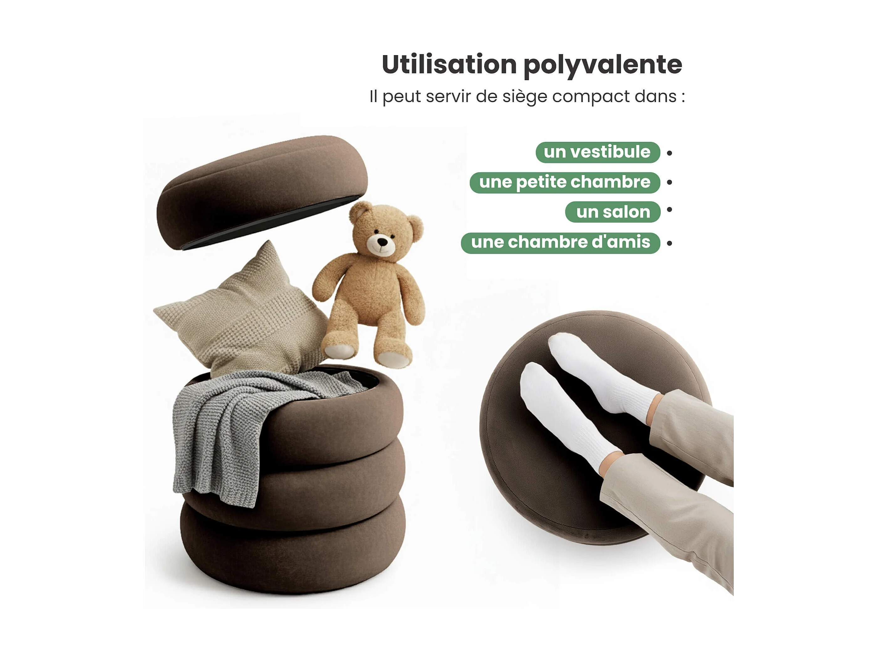 Tabouret en velours avec rangement 42 cm SNUGGO Marron