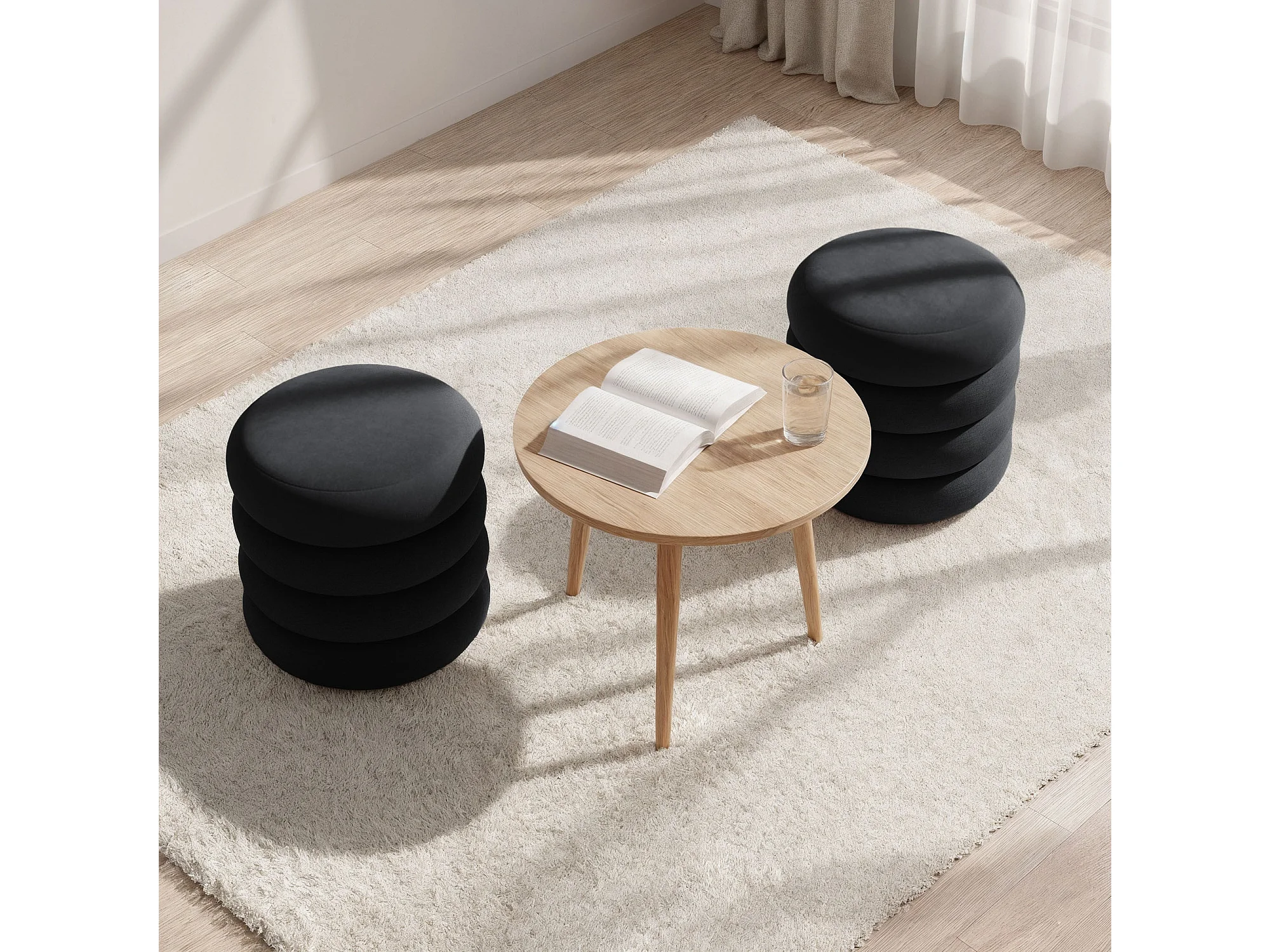 Tabouret en velours avec rangement 42 cm SNUGGO Noir