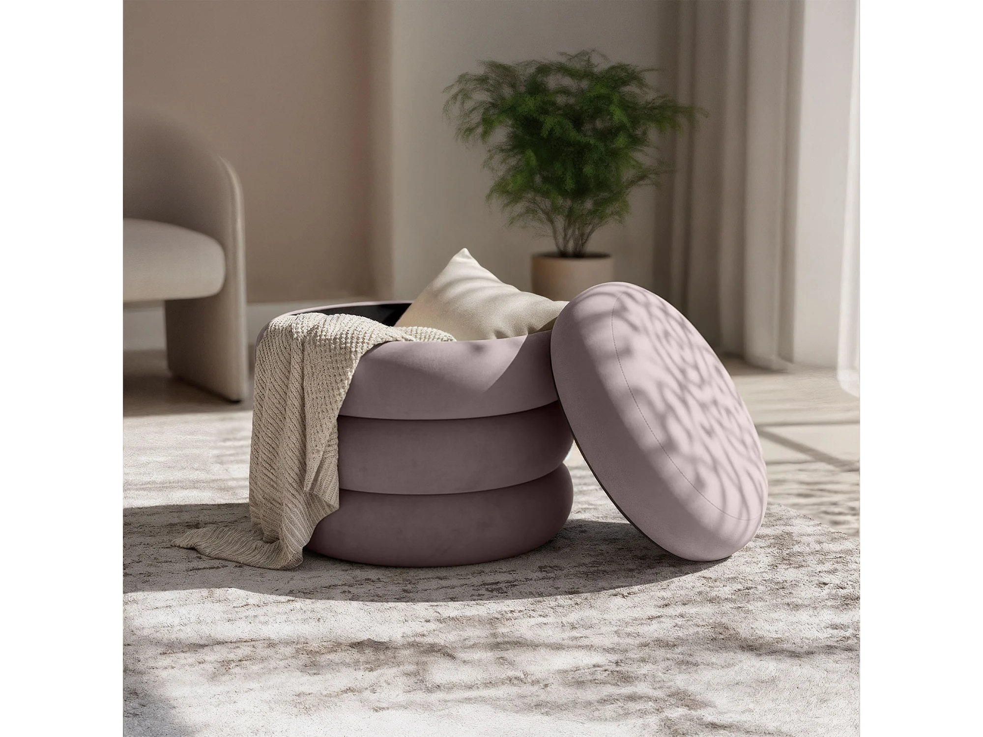 Tabouret en velours avec rangement 42 cm SNUGGO Rose Poudré