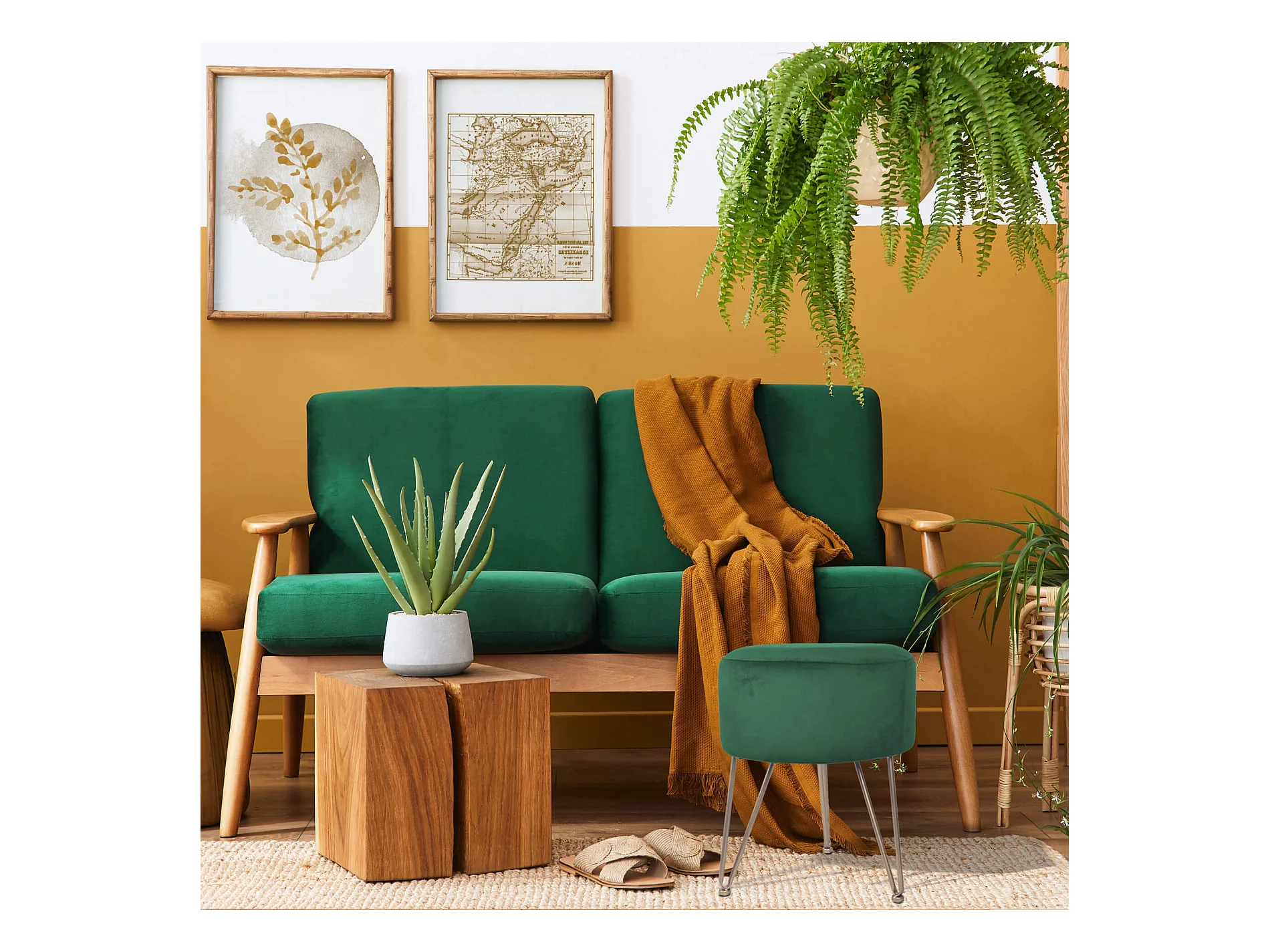 Tabouret en Velours Vert avec Siège Rembourré pour le Salon