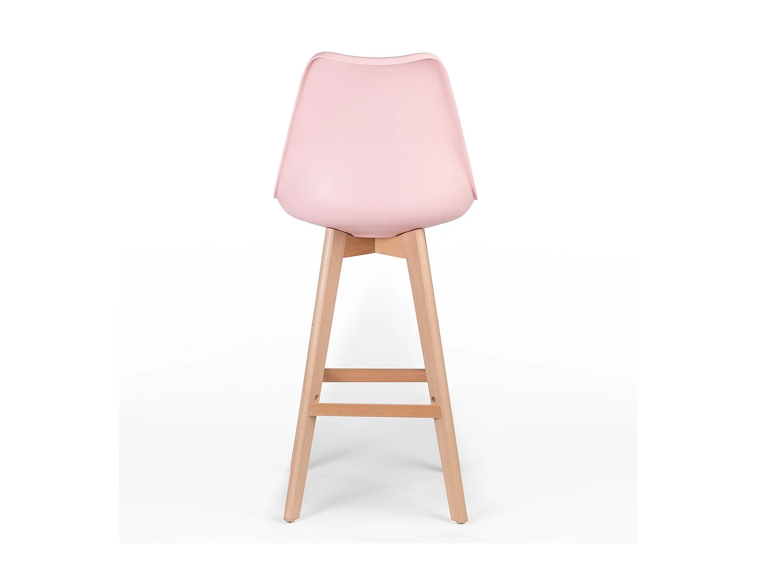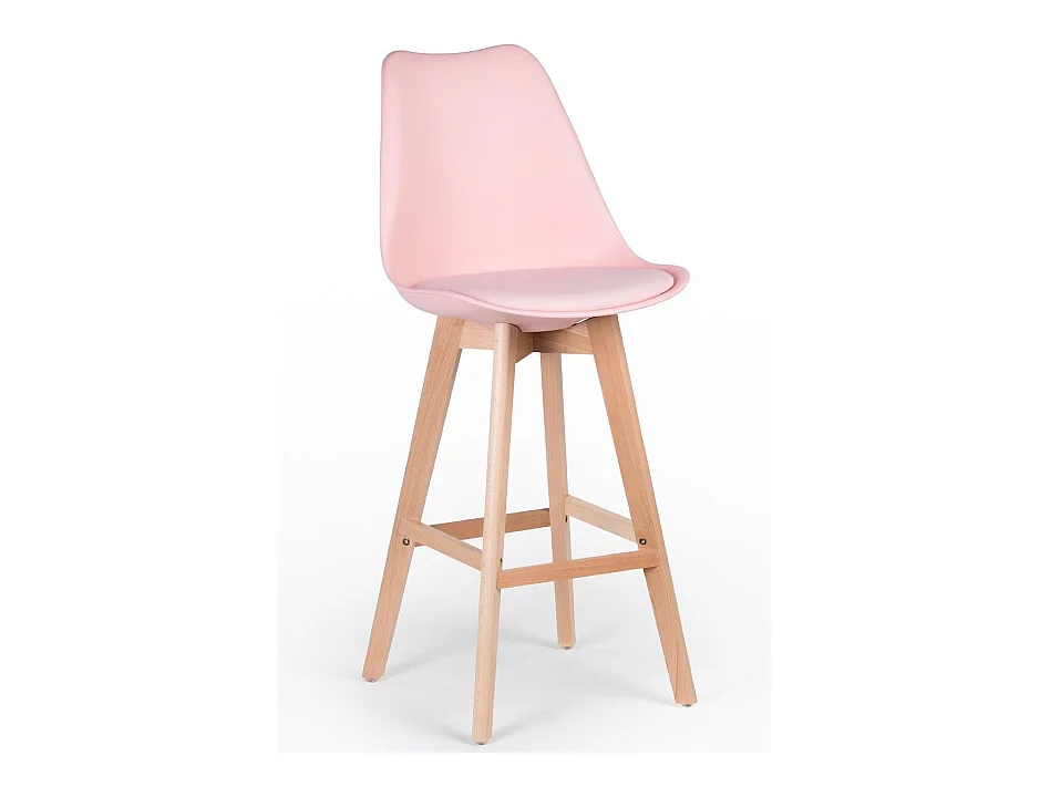 Tabouret haut nordique coussin simili cuir rose clair et pieds hêtre clair Tula 76cm