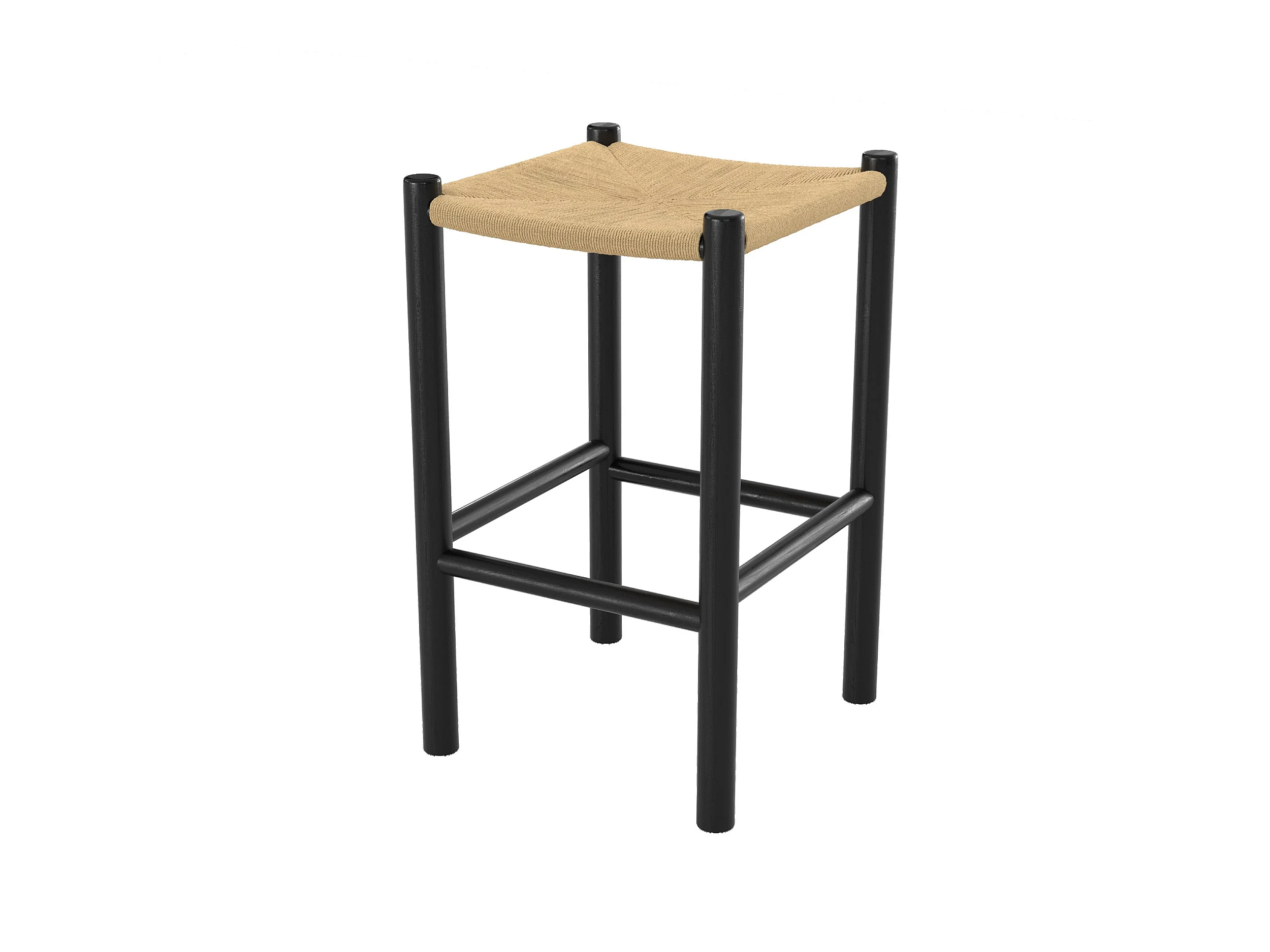 Tabouret pour ilot central 65 cm en teck noir et rotin - Kaïa