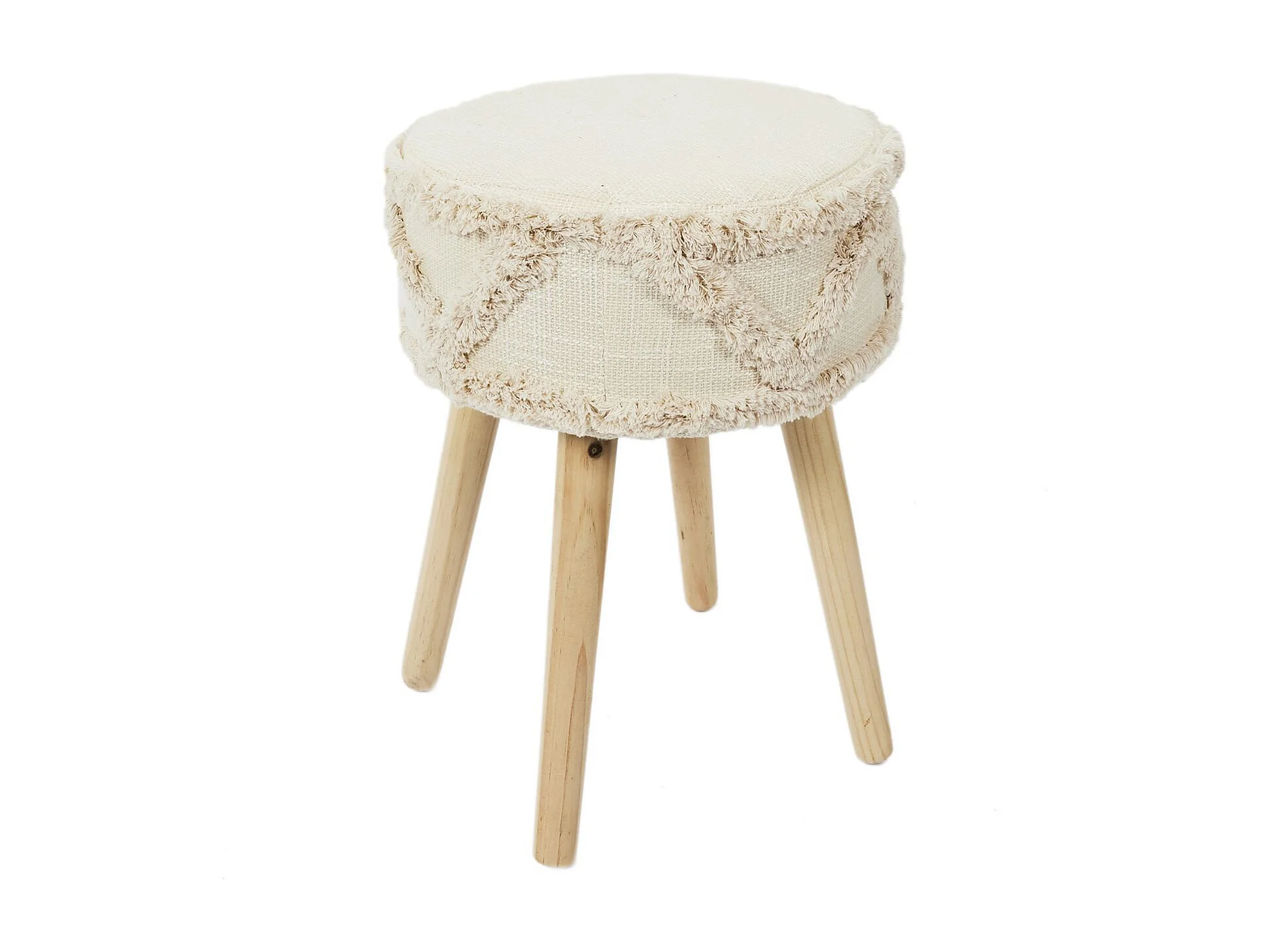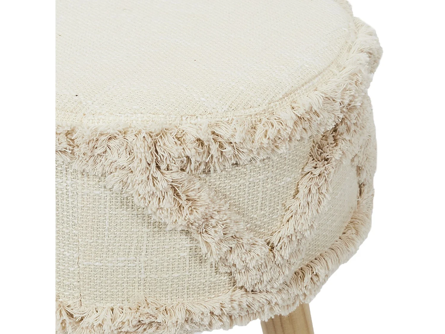 Tabouret bas avec pieds en bois Crème Velours FR33548