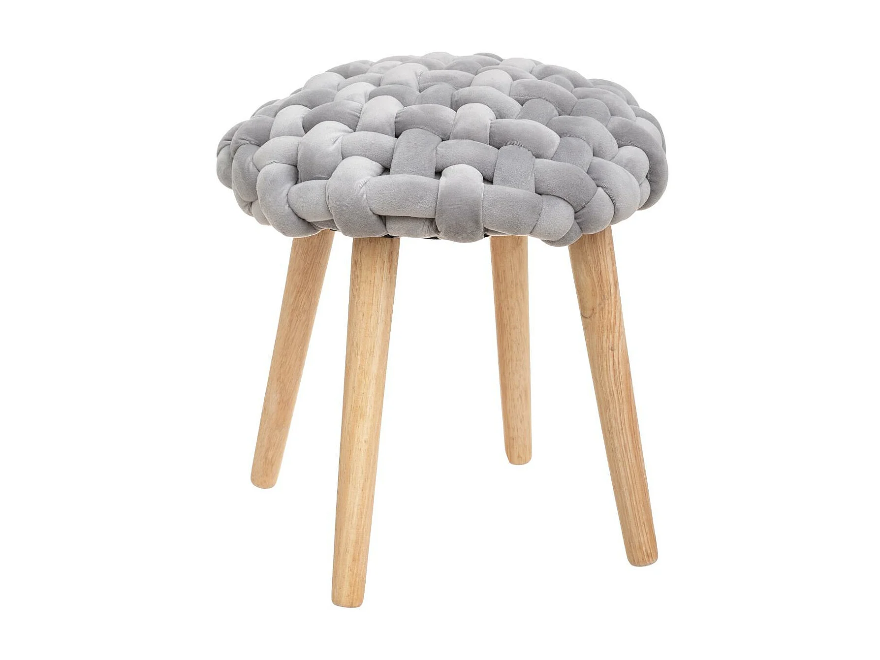Tabouret pied en Bois et Assise Tricot Velours Gris