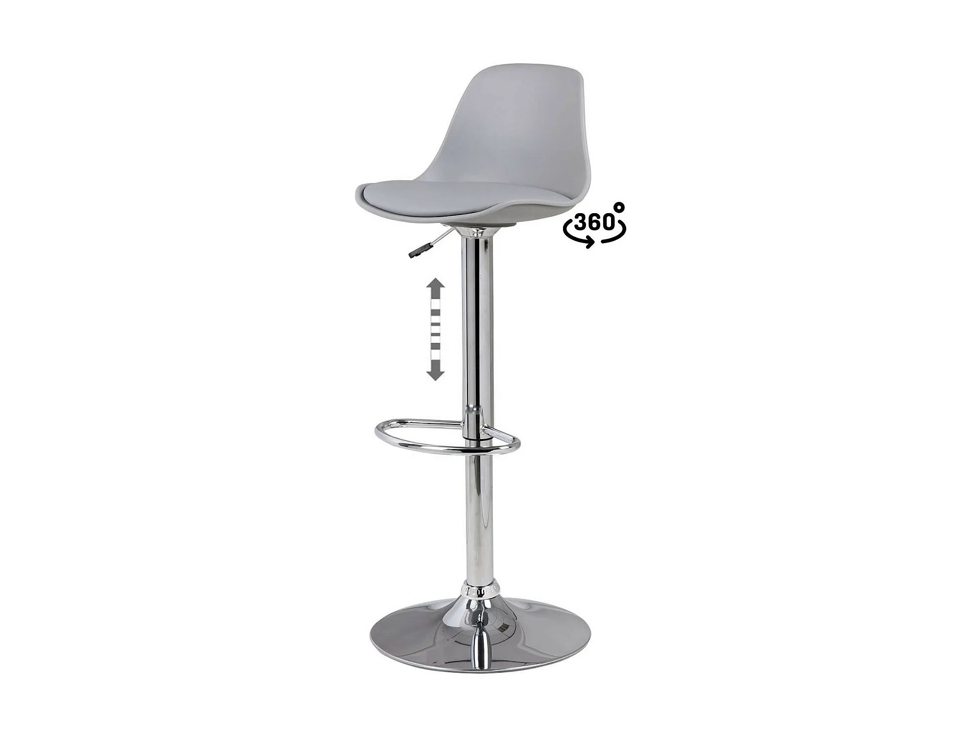 Tabouret pivotant et relevable pied acier chromé Kaly-Couleur Gris