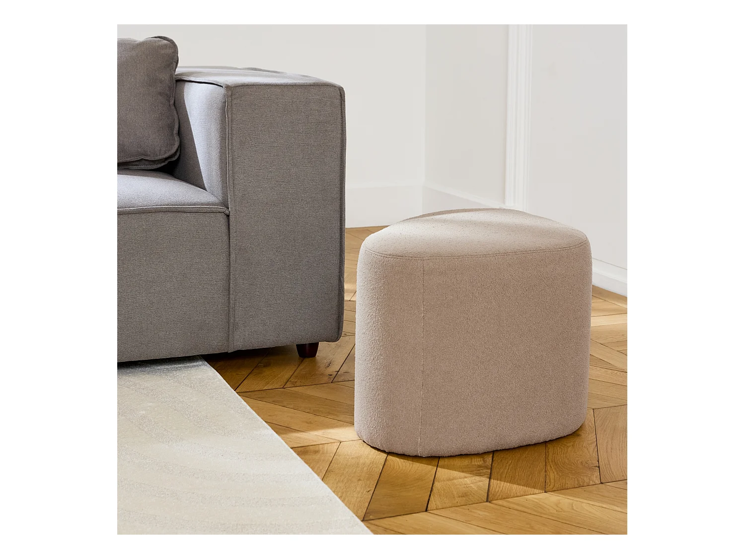 tabouret. pouf en forme de galet en tissu greige. TAO L 60 x P 44 x H 40cm