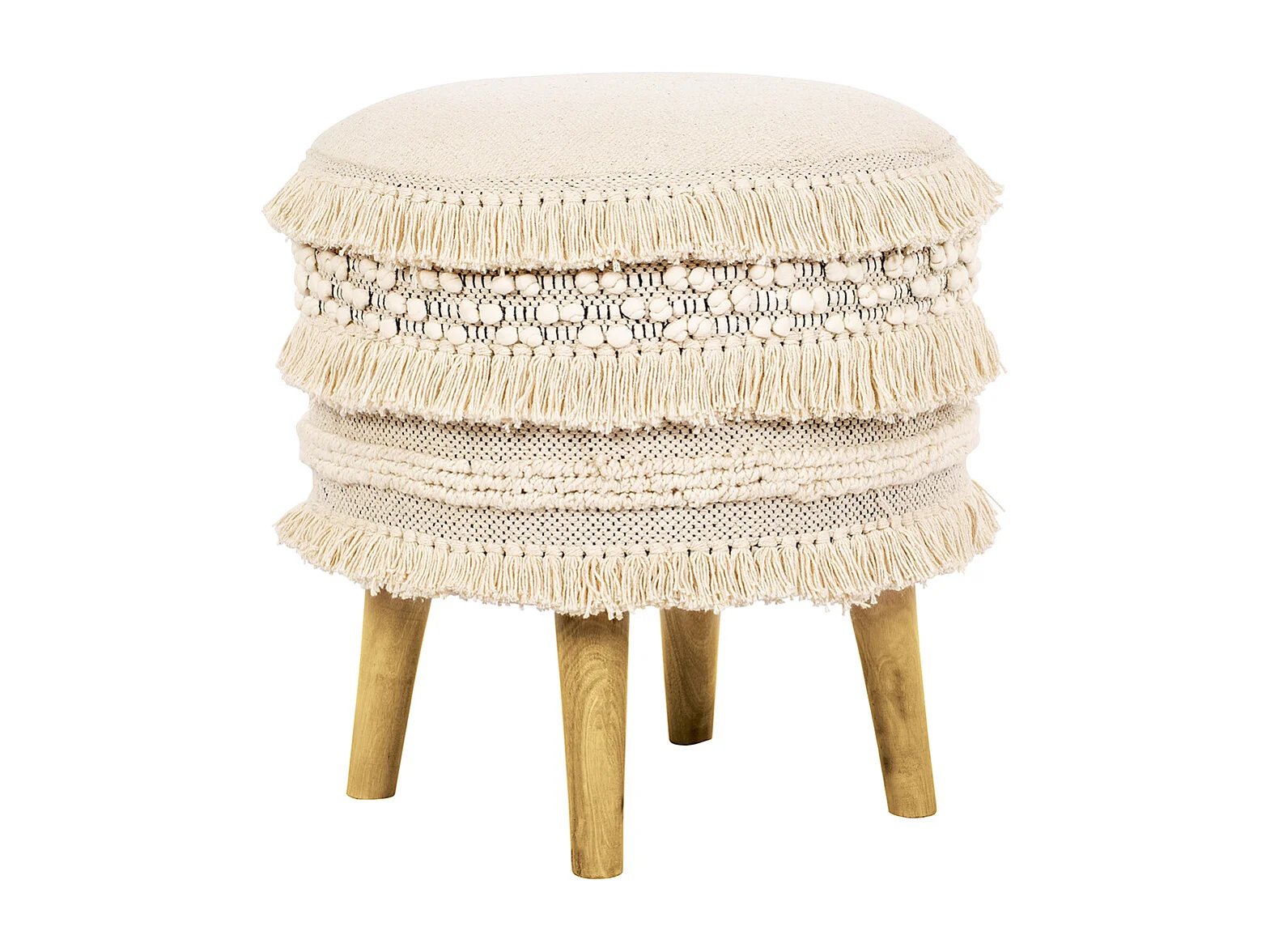 Tabouret Pouf Rond - Style Boho Bali - Ivy Ivoire