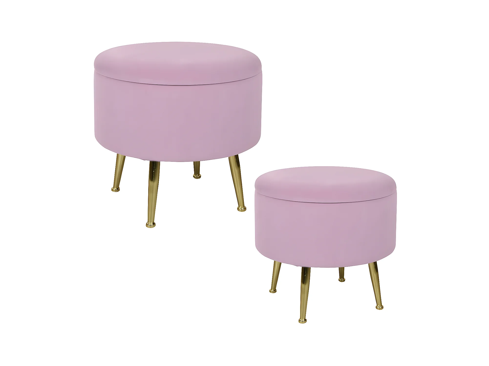Tabouret pouf rond tissu rose pieds dorés TIM (lot de 2)