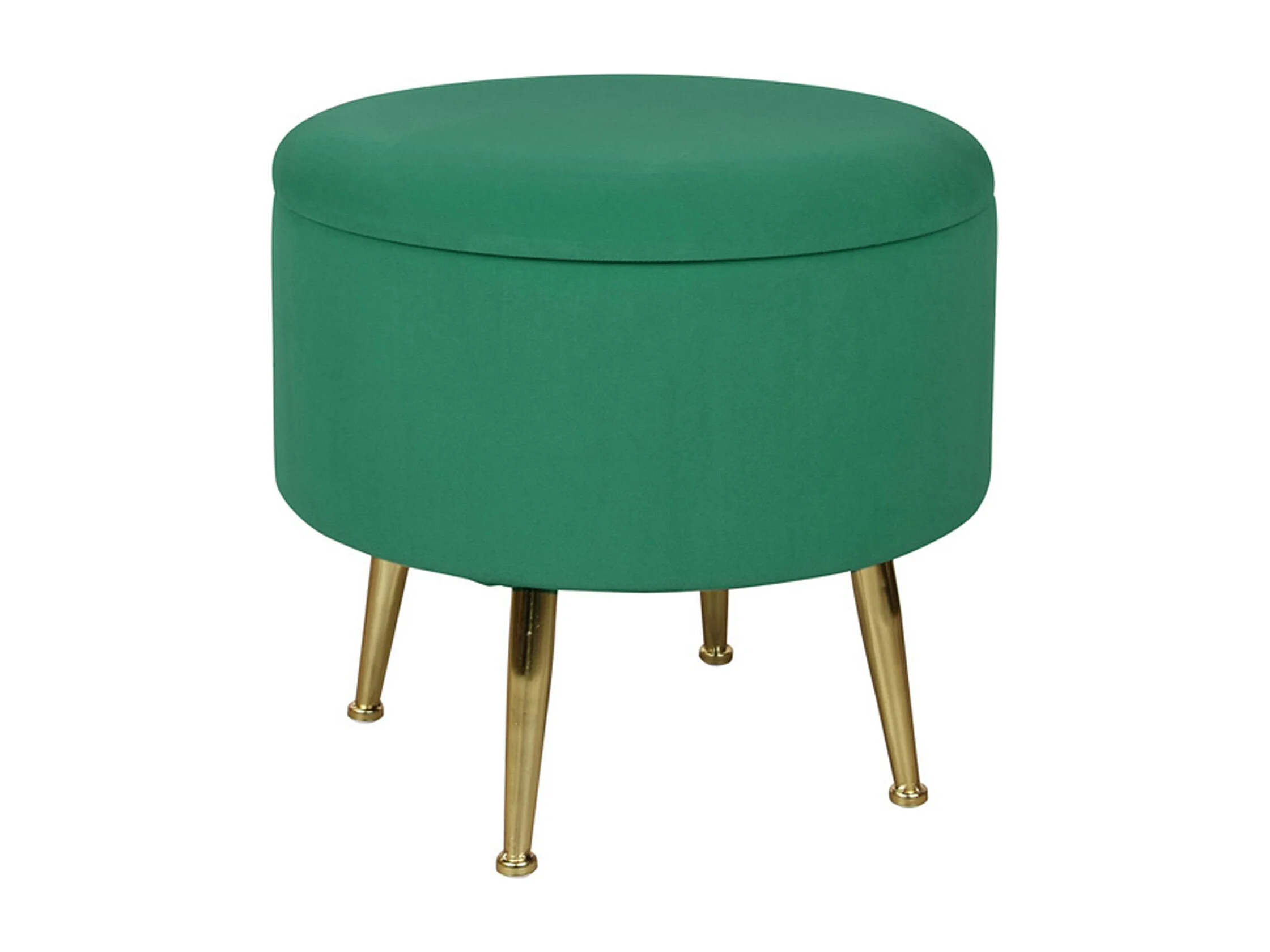 Tabouret pouf rond tissu vert pieds dorés TIM (lot de 2)