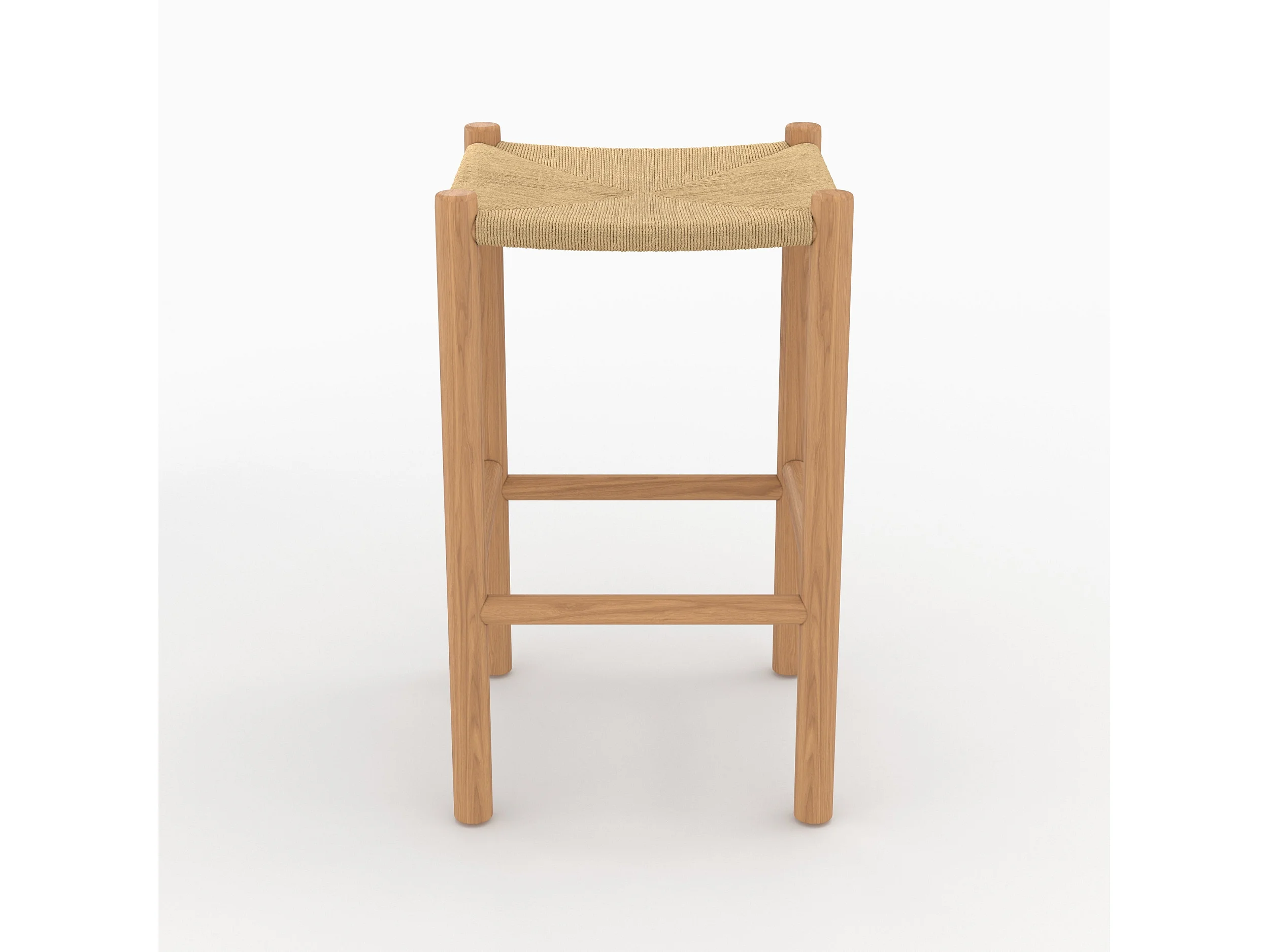 Tabouret pour ilot central 65 cm en teck et rotin - Kaïa