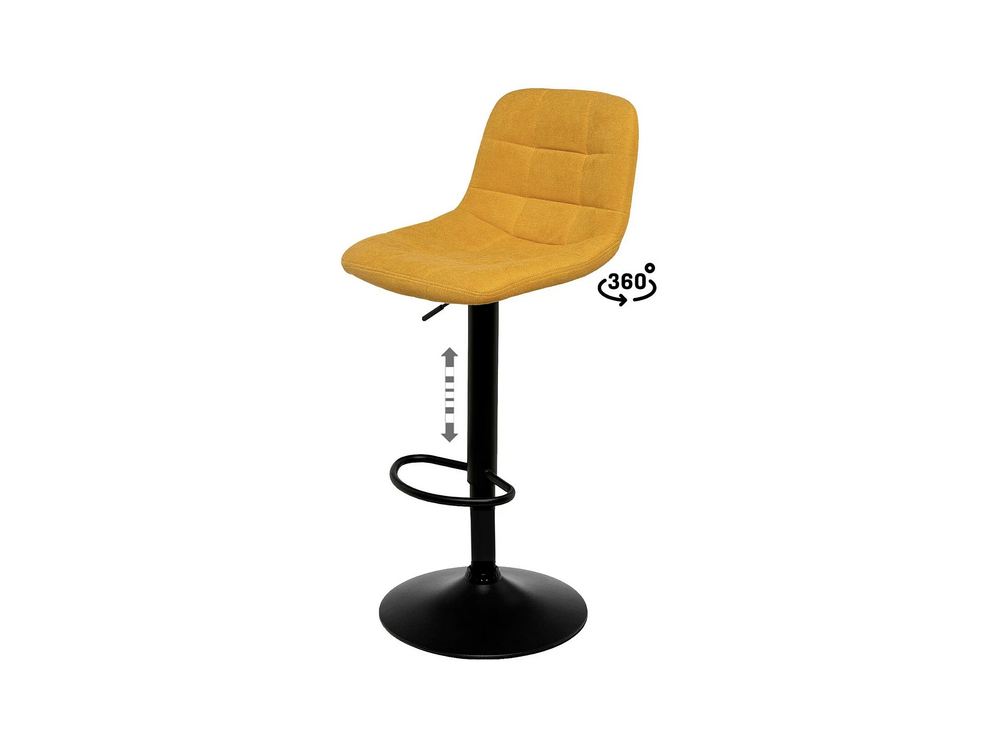 Tabouret relevable et rotatif avec assise tissu et structure métal noir Kasha-Couleur Jaune moutarde
