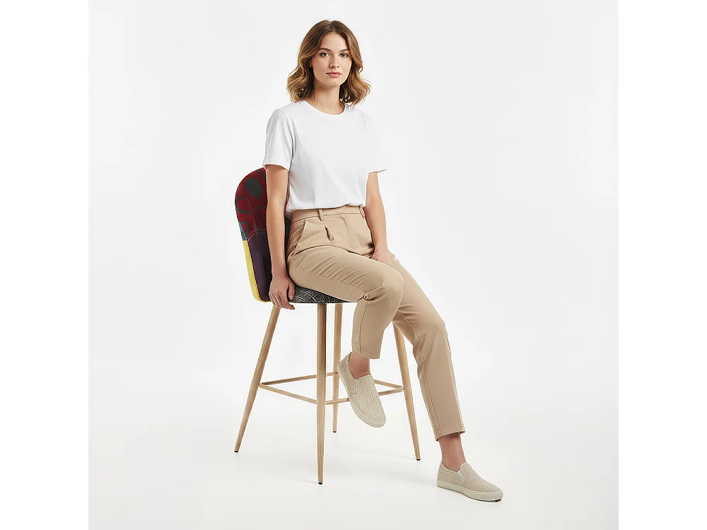 Tabouret Rembourré en Patchwork - Style Scandinave - 66cm - Evelyne Multicolore