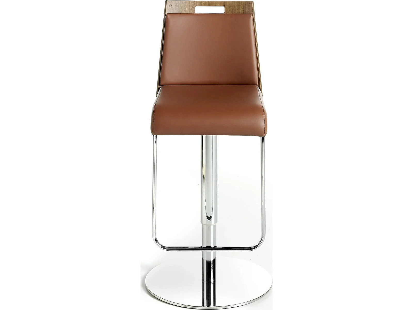 Tabouret rembourré en simili hauteur réglable dossier bois structure acier inoxydable