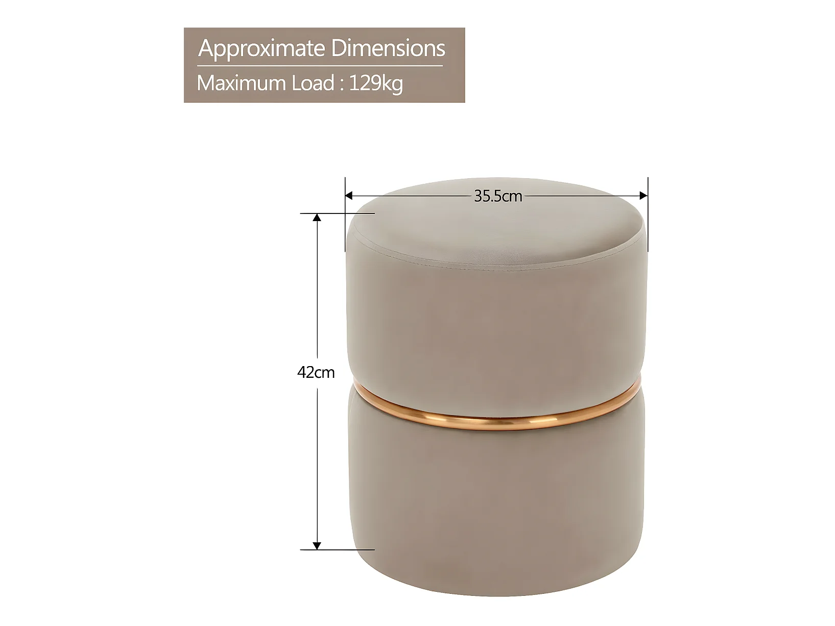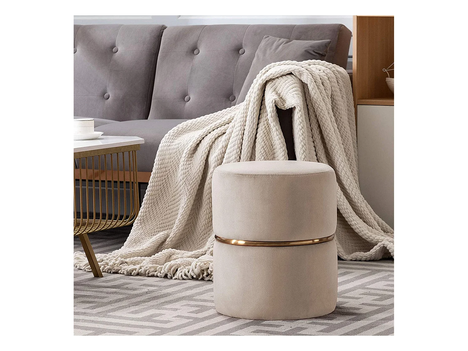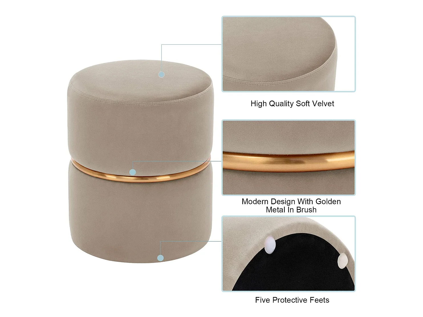 Tabouret rembourré rond pouf métal beige 35 x 35 x 42 cm TABO09063