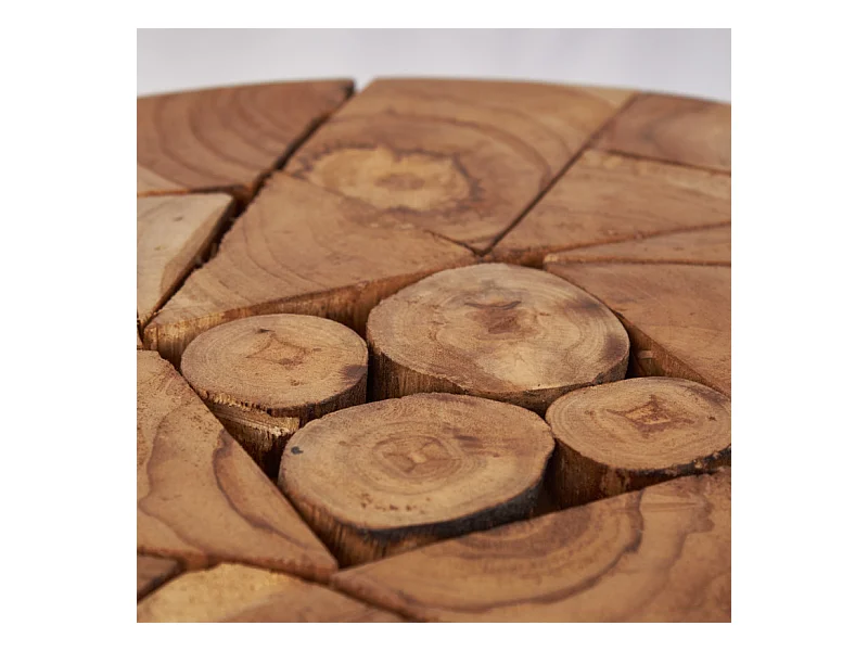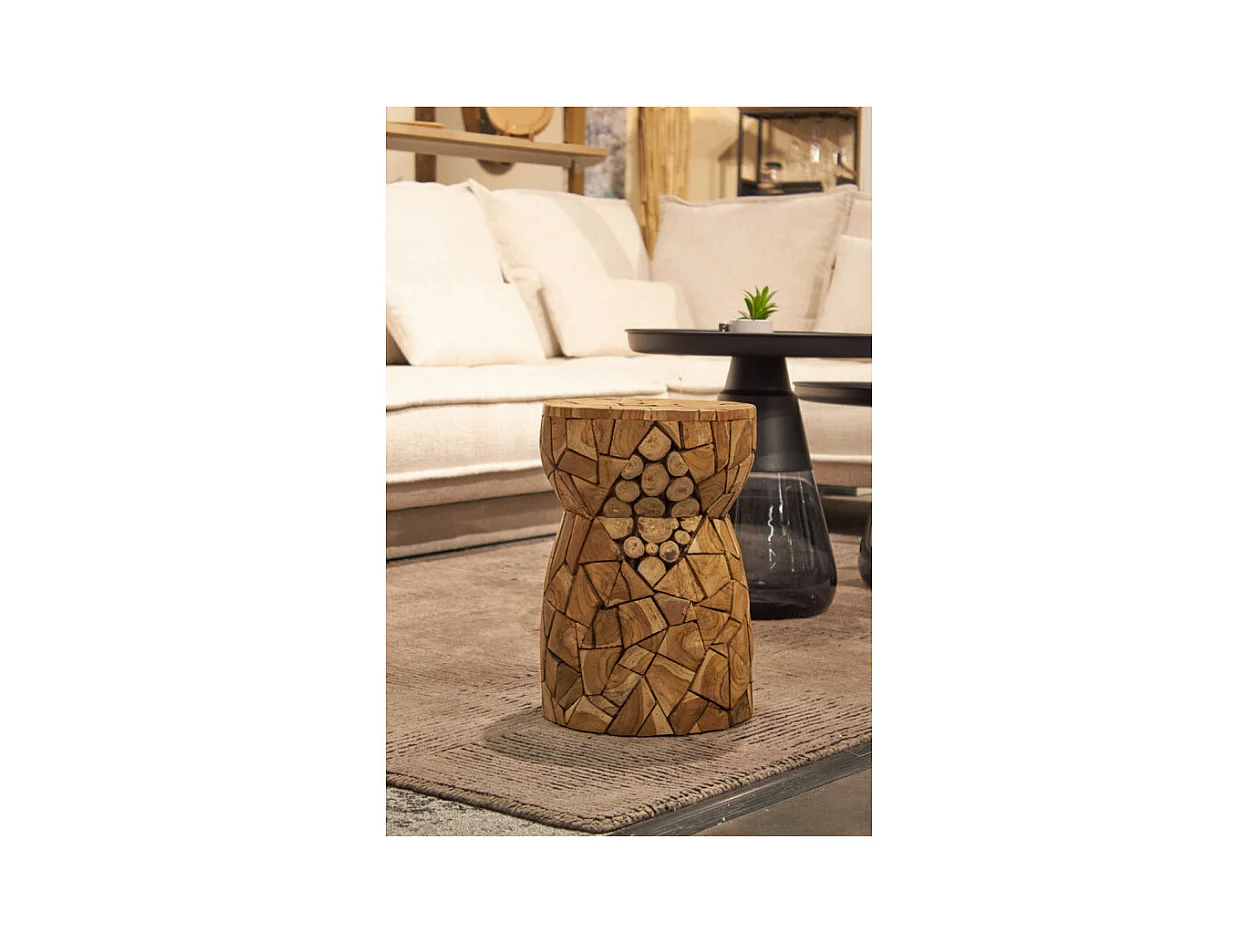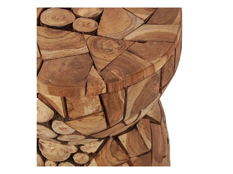 Tabouret rond 30 x 45 cm en assemblage de bois de teck – HIRAM