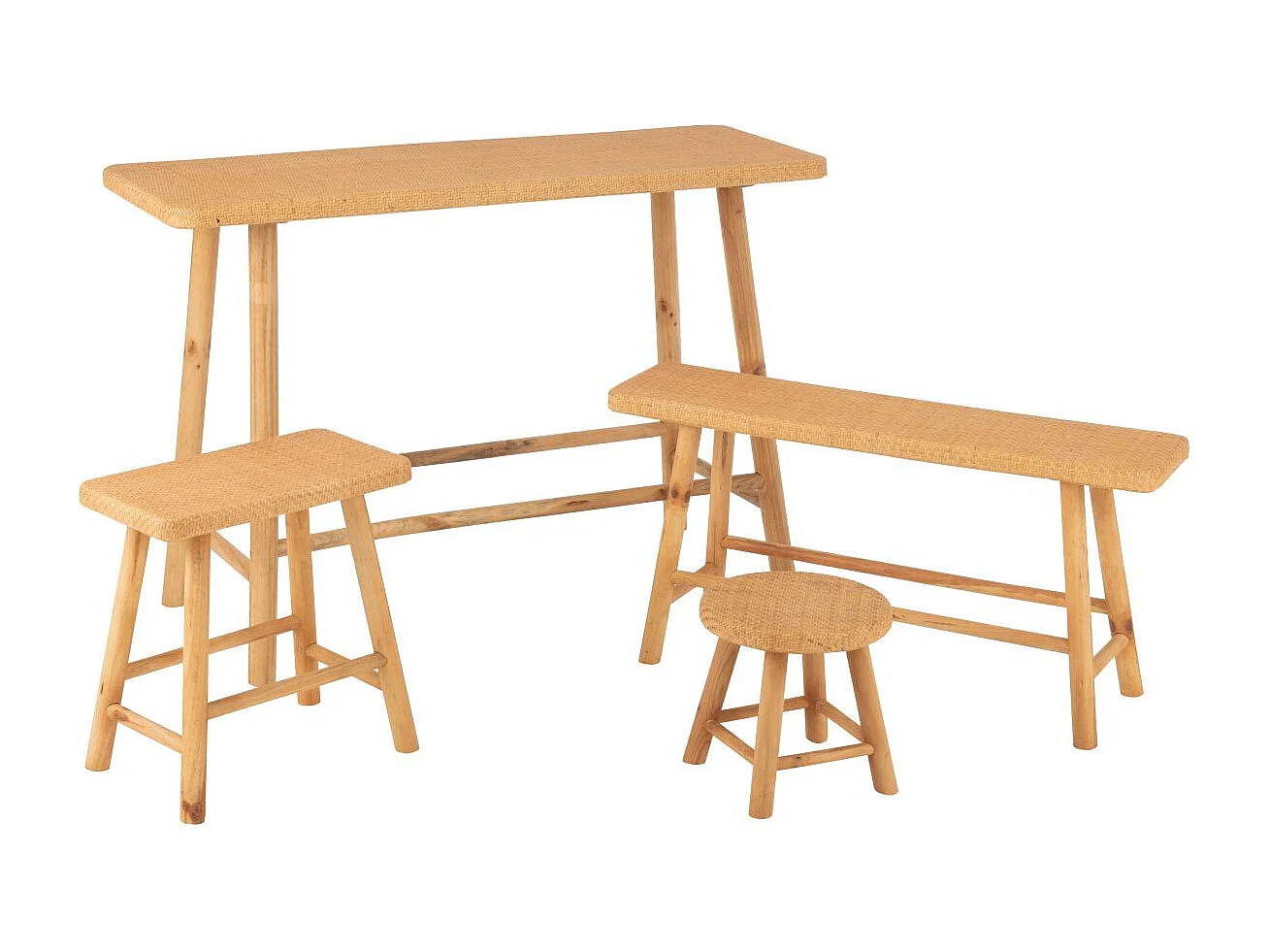 Tabourets en pin et rotin naturel (lot de 2) - LAOS
