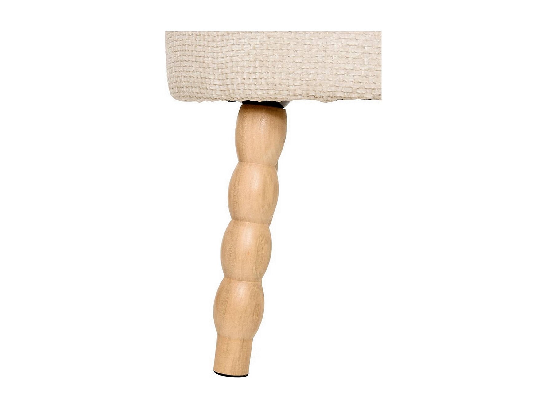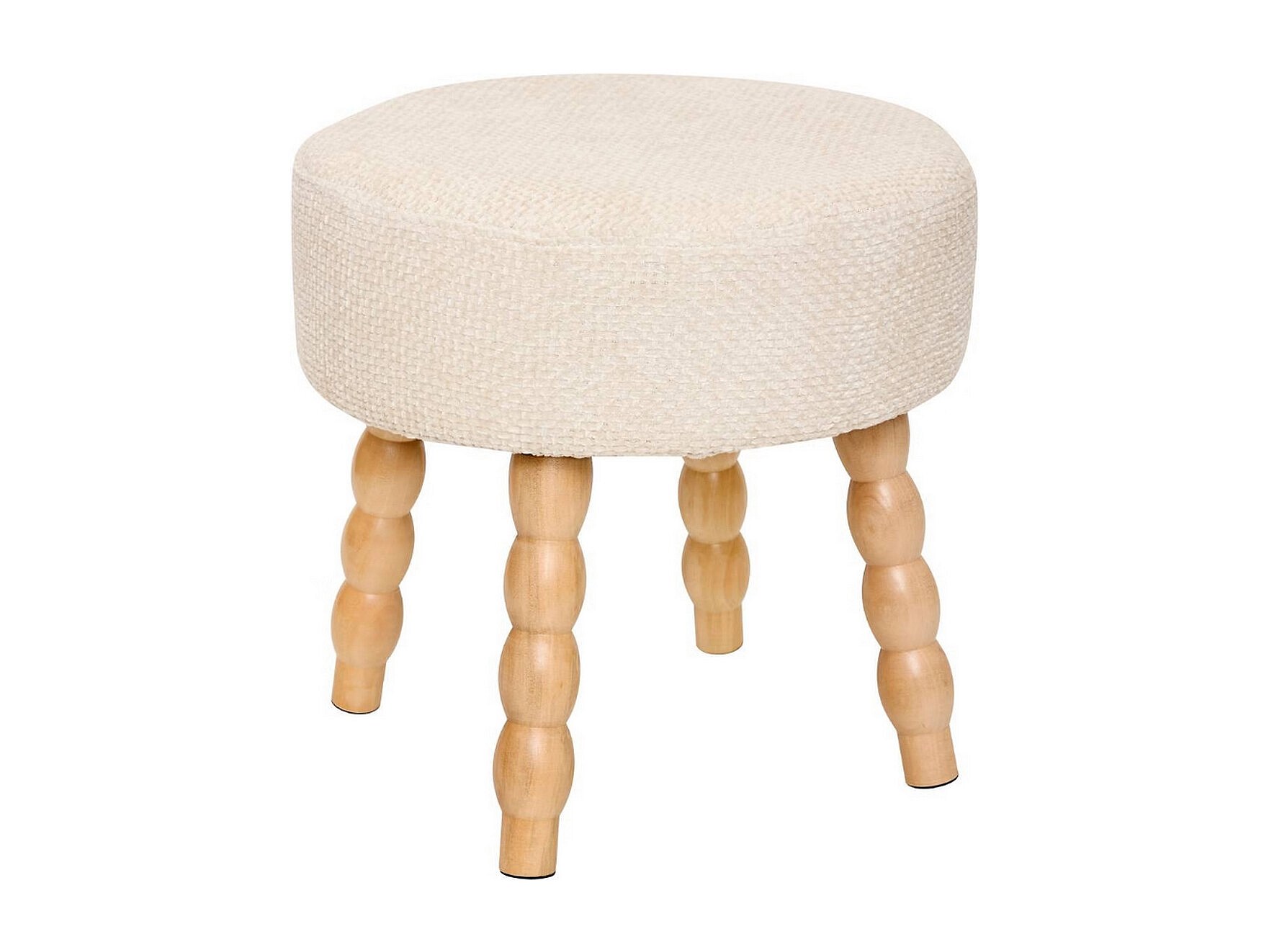 Tabouret rond rembourré tissu crème et pieds en bois - Diamètre 39 x Profondeur 38 x Hauteur 38 cm