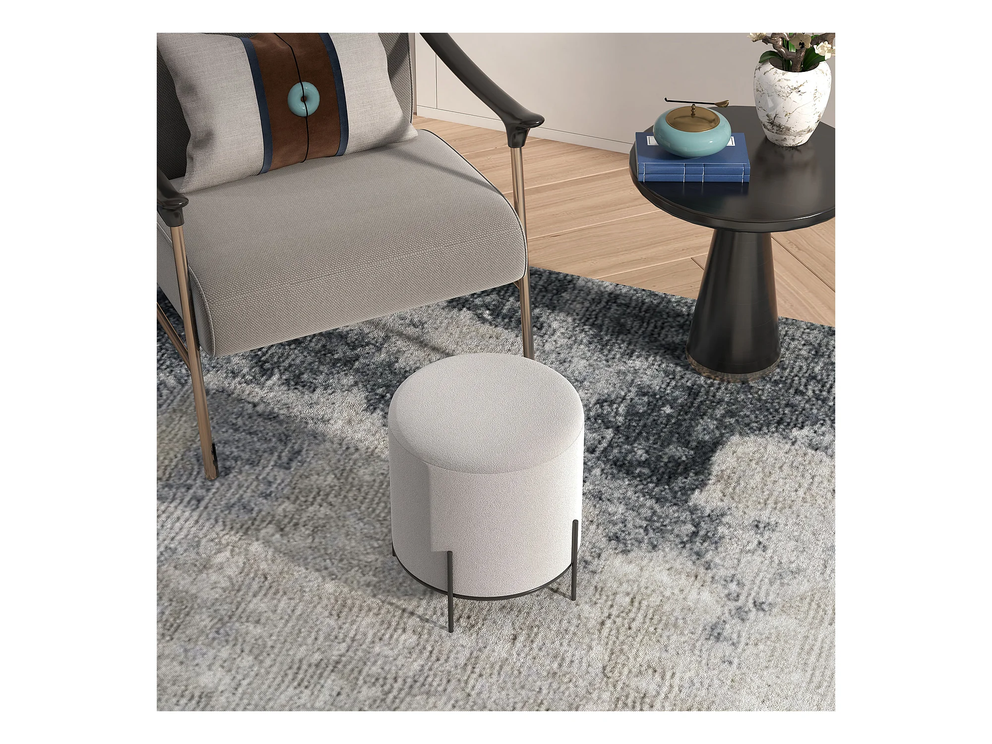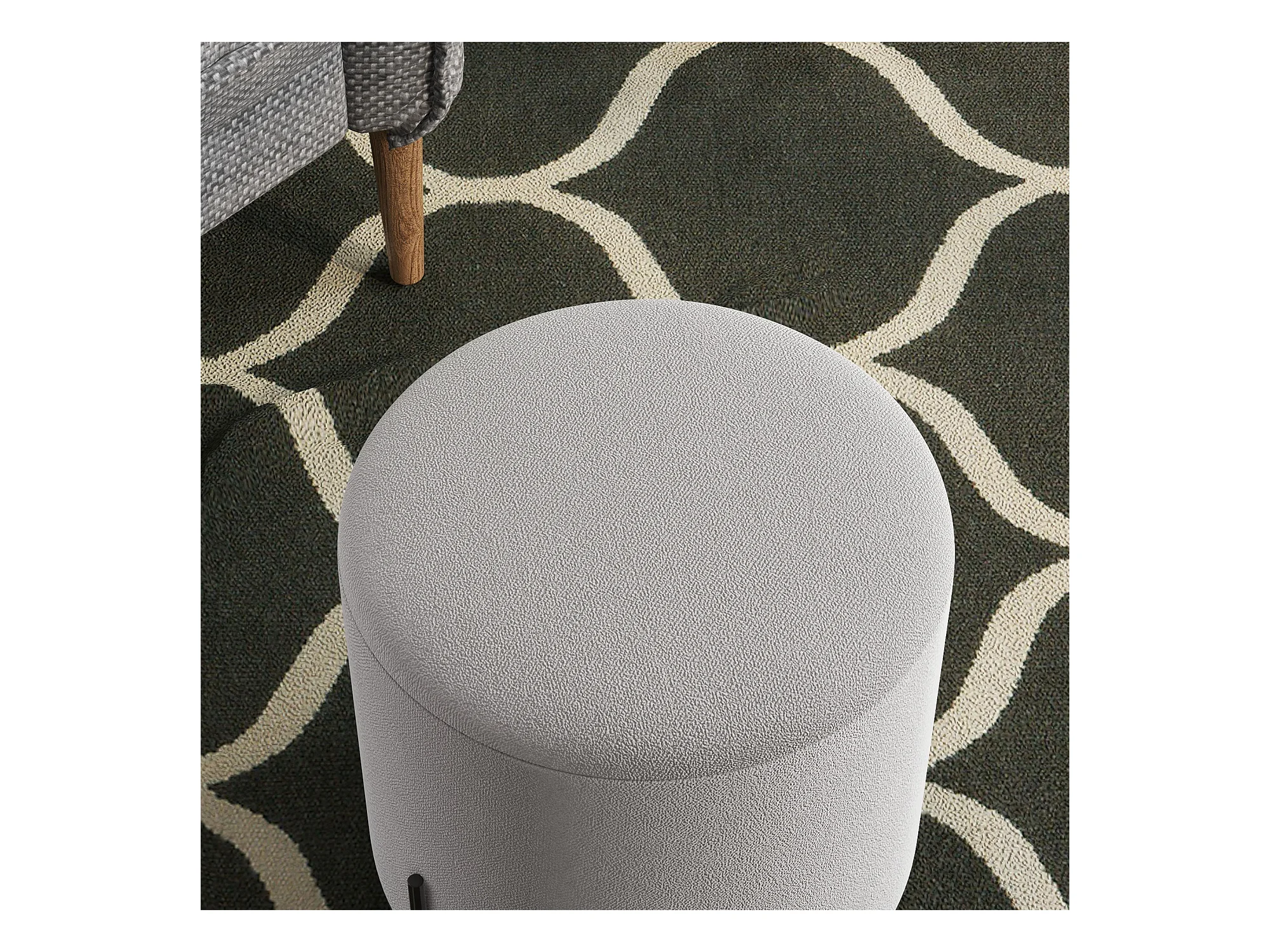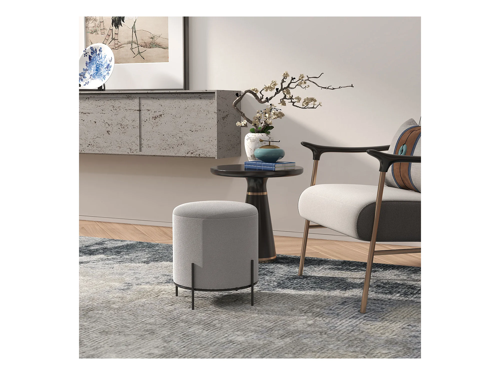 Tabouret rond style contemporain châssis piètement acier noir assise aspect velours gris clair