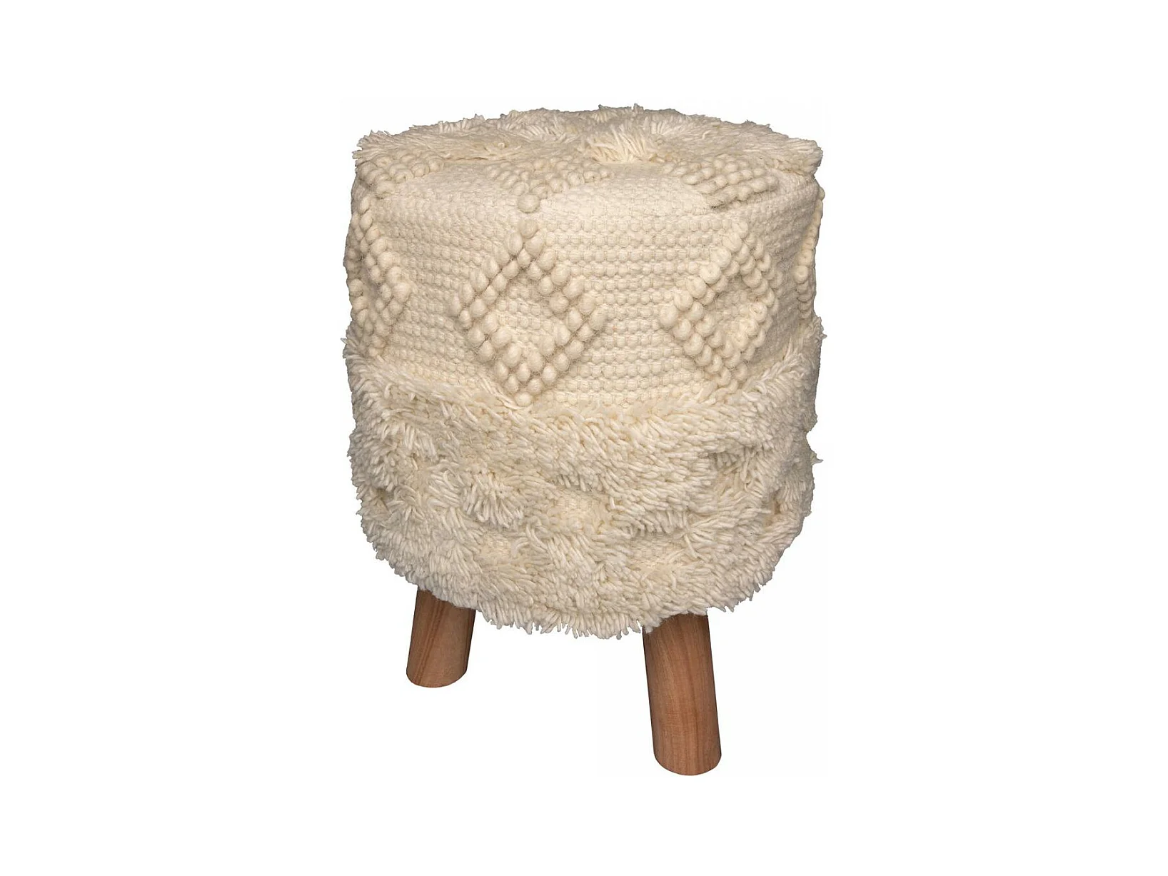 Tabouret semi artisanal en laine ZASTE 50x50x45 crème