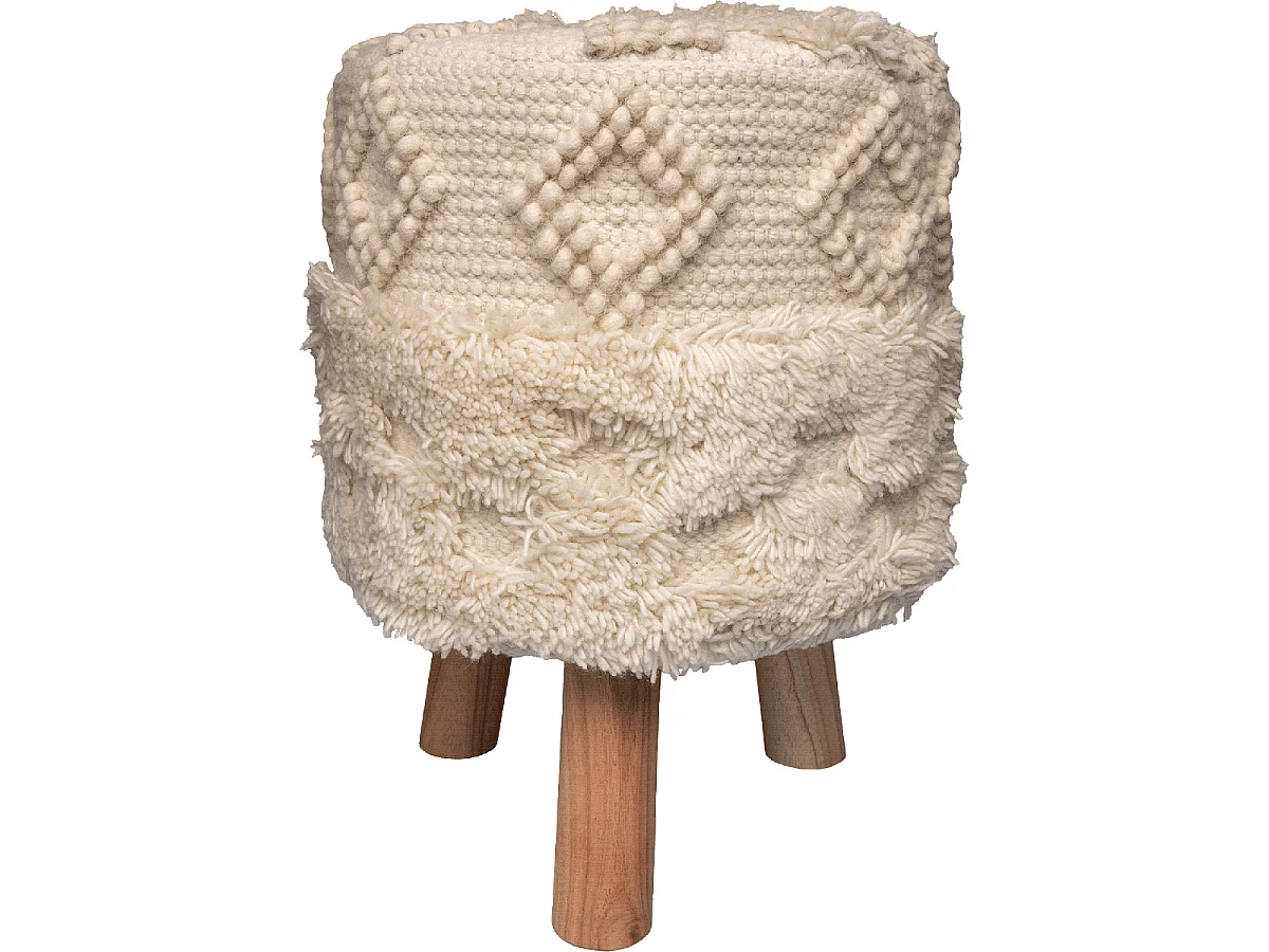 Tabouret semi artisanal en laine ZATI 35x35x47 crème